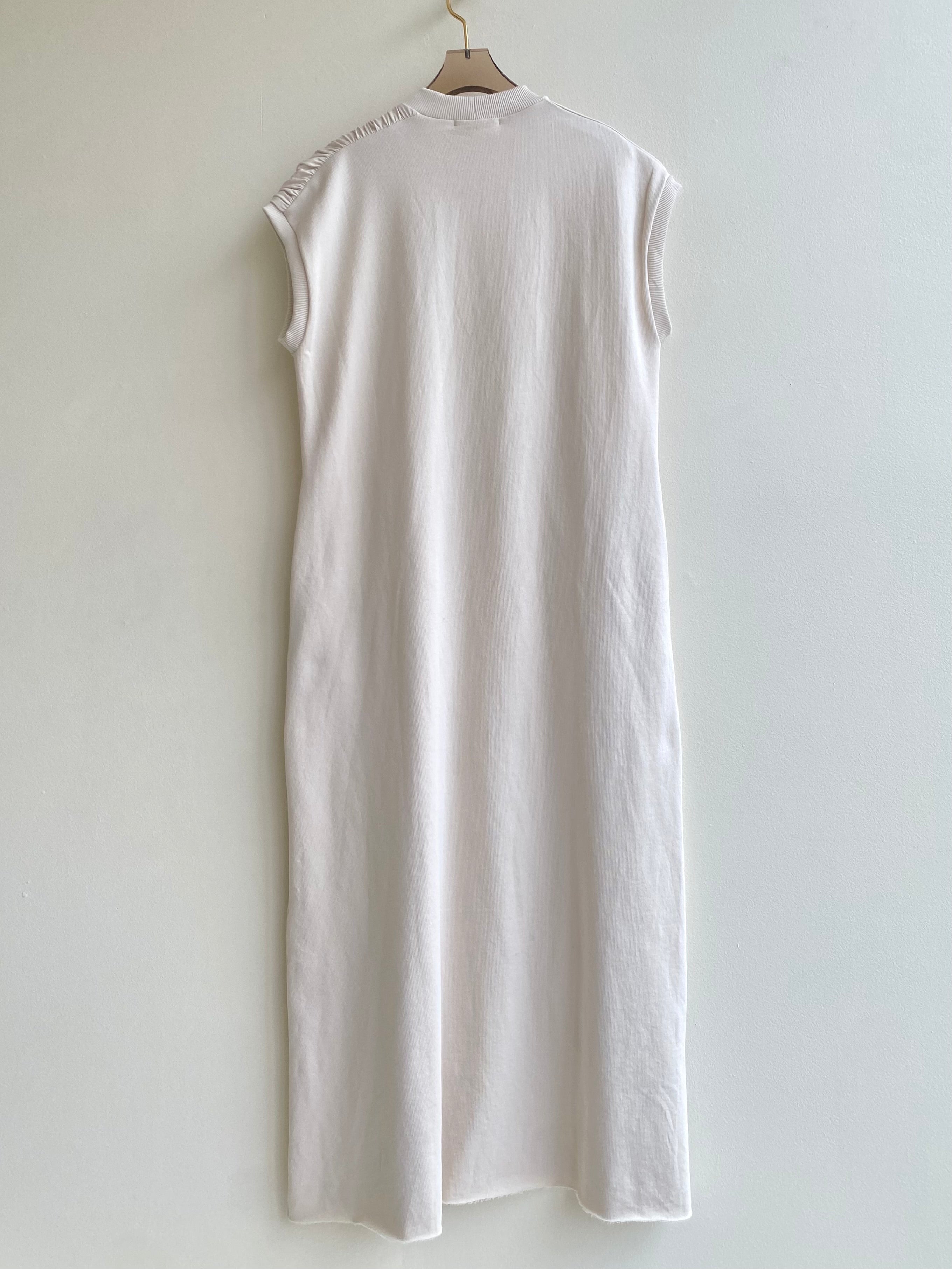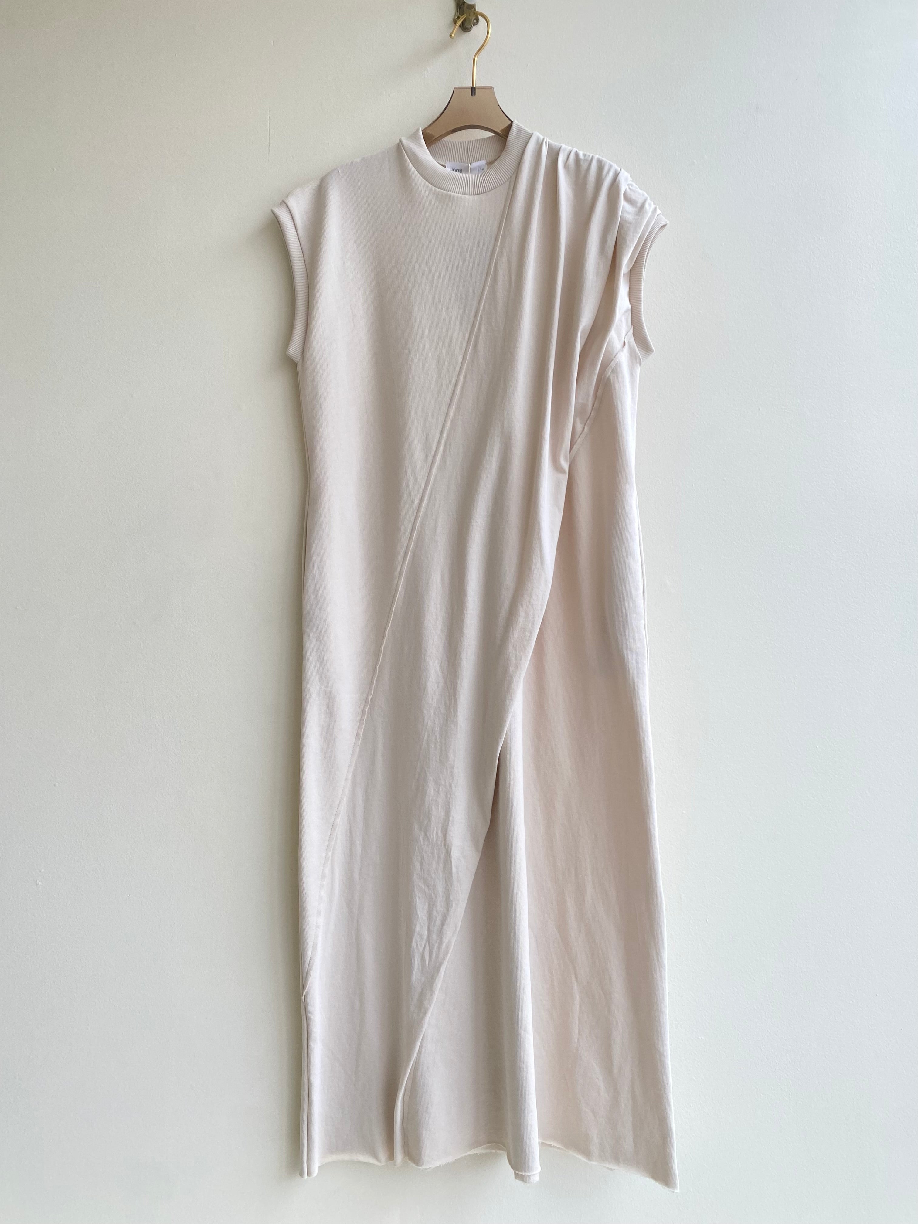 Talk about effortless — these three pieces are each perfect for those between-season times, but tossed on together they look so easy and chic. The jacket is another from our Indoor-Outdoor Jackets collection, a one-of-a-kind, shawl-collar gem from Brosgé sewn from a lightweight vintage wool shawl in the most beautiful paisley. It would look equally incredible with a pair of jeans and a t-shirt, or trousers and a blouse, but we’ve paired it here with another wardrobe workhorse: a sleeveless, drape-front t-shirt dress from Unne in ivory — so easy to wear and pair for just about any scenario, and great on its own in Summer. And of course we’ve finished the outfit with a simple gold chain necklace and our favorite between-season shoe: the shearling lined El Paso slip-ons from Sabah. Between the wool scarf as jacket and the shearling lined shoes, you can get away with this outfit in late Spring, early Fall, an overly air-conditioned office, or wherever/whenever there’s a bit of chill in the air.