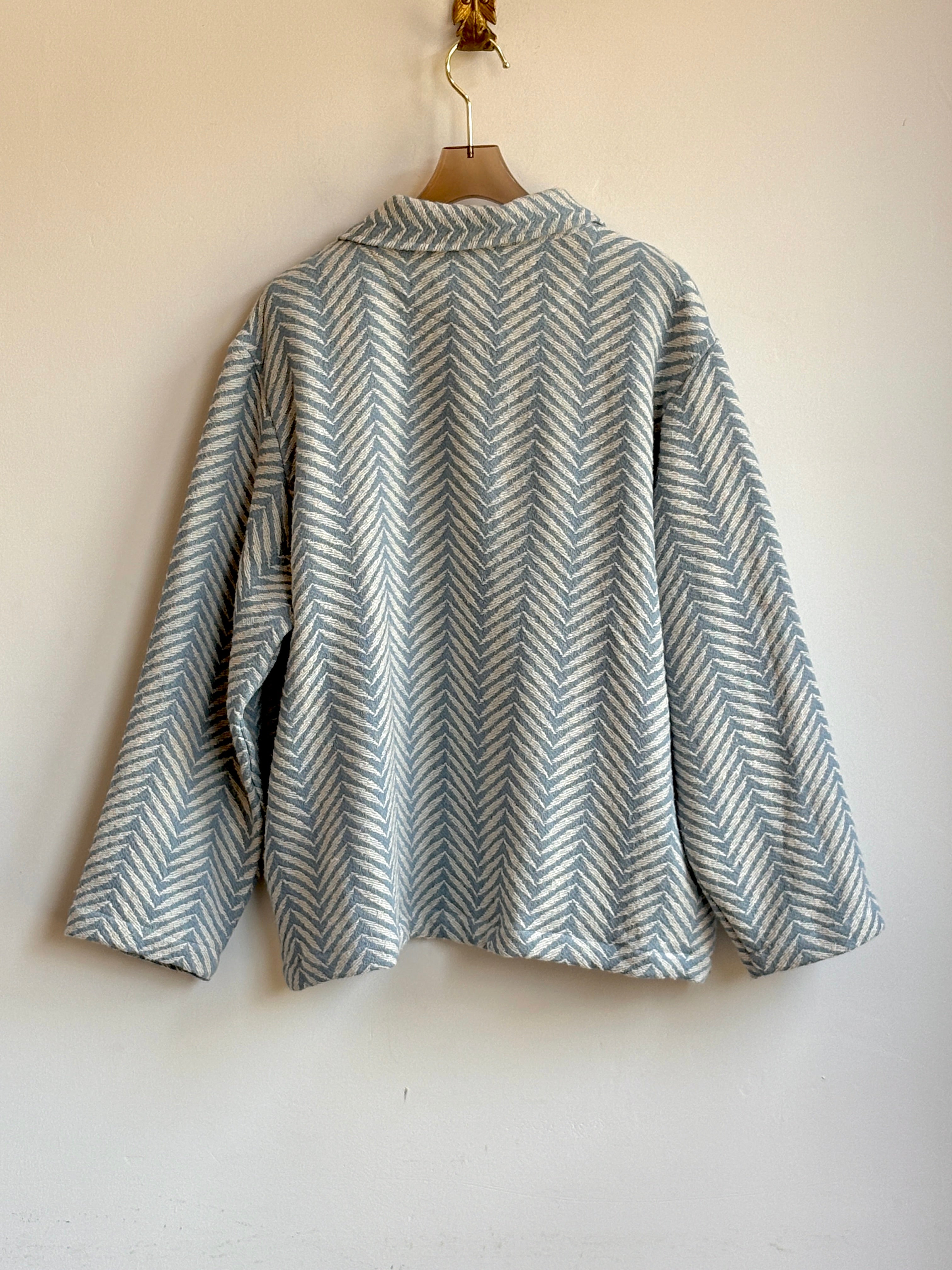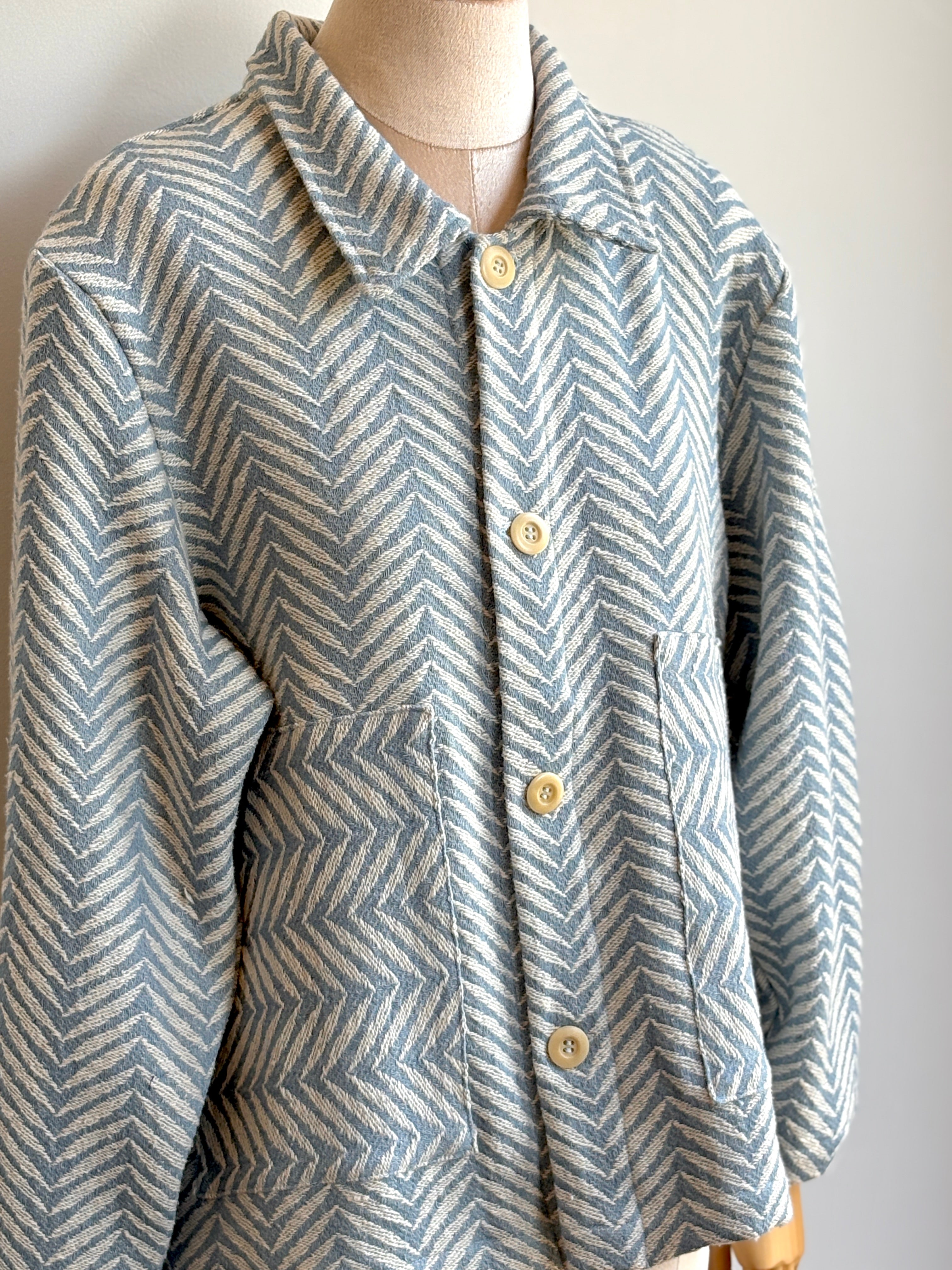 We just got a batch of freshly sewn box tops from our friend Cheryl at The Highlands Foundry and think they’re a perfect pairing with our box-pleated MXH Wide-Leg Pants. For this outfit, we chose an indigo blue calico print top and paired it with the wide-legs in ivory linen — the perfect Spring-into-Summer pant. And since the weather can’t make up its mind, we added the gorgeous, lightweight utility jacket in a blue-and-white weave and shearling lined Sabah shoes, along with a Summer-leaning straw bag from Per Lei in bright orange.