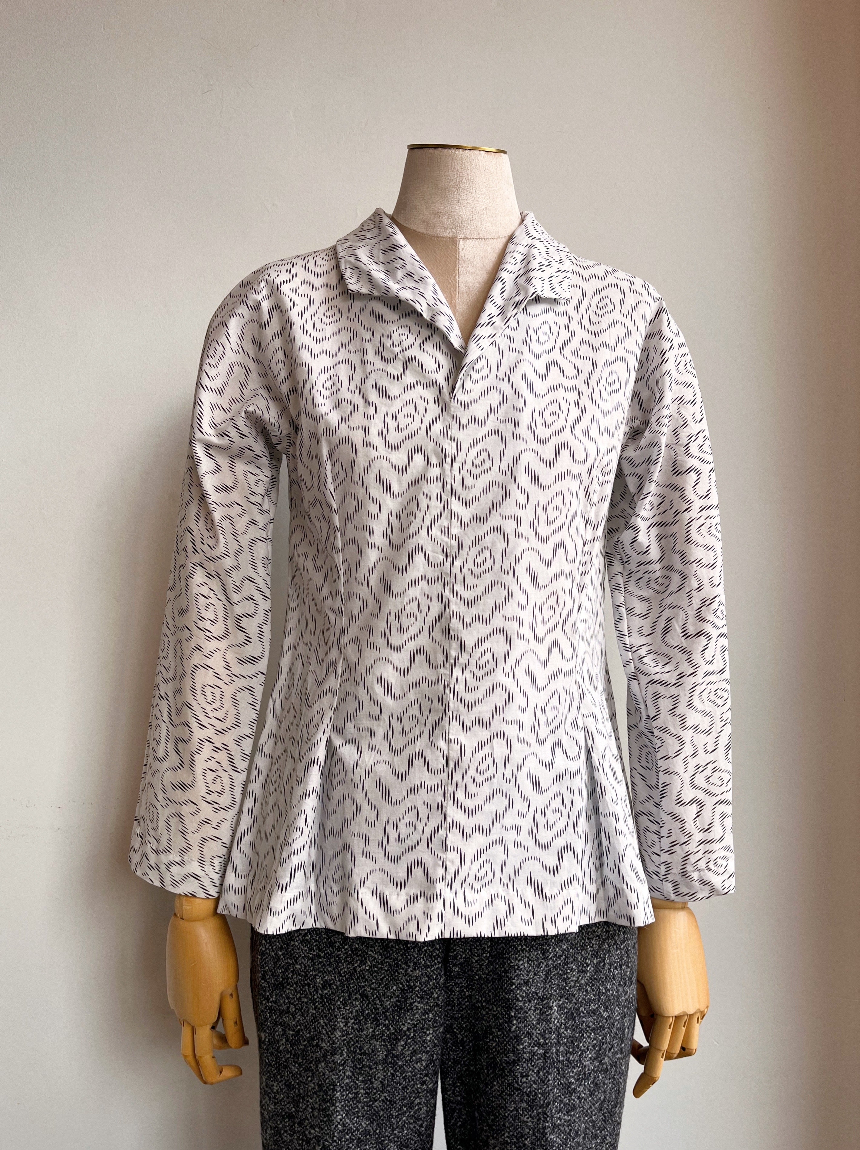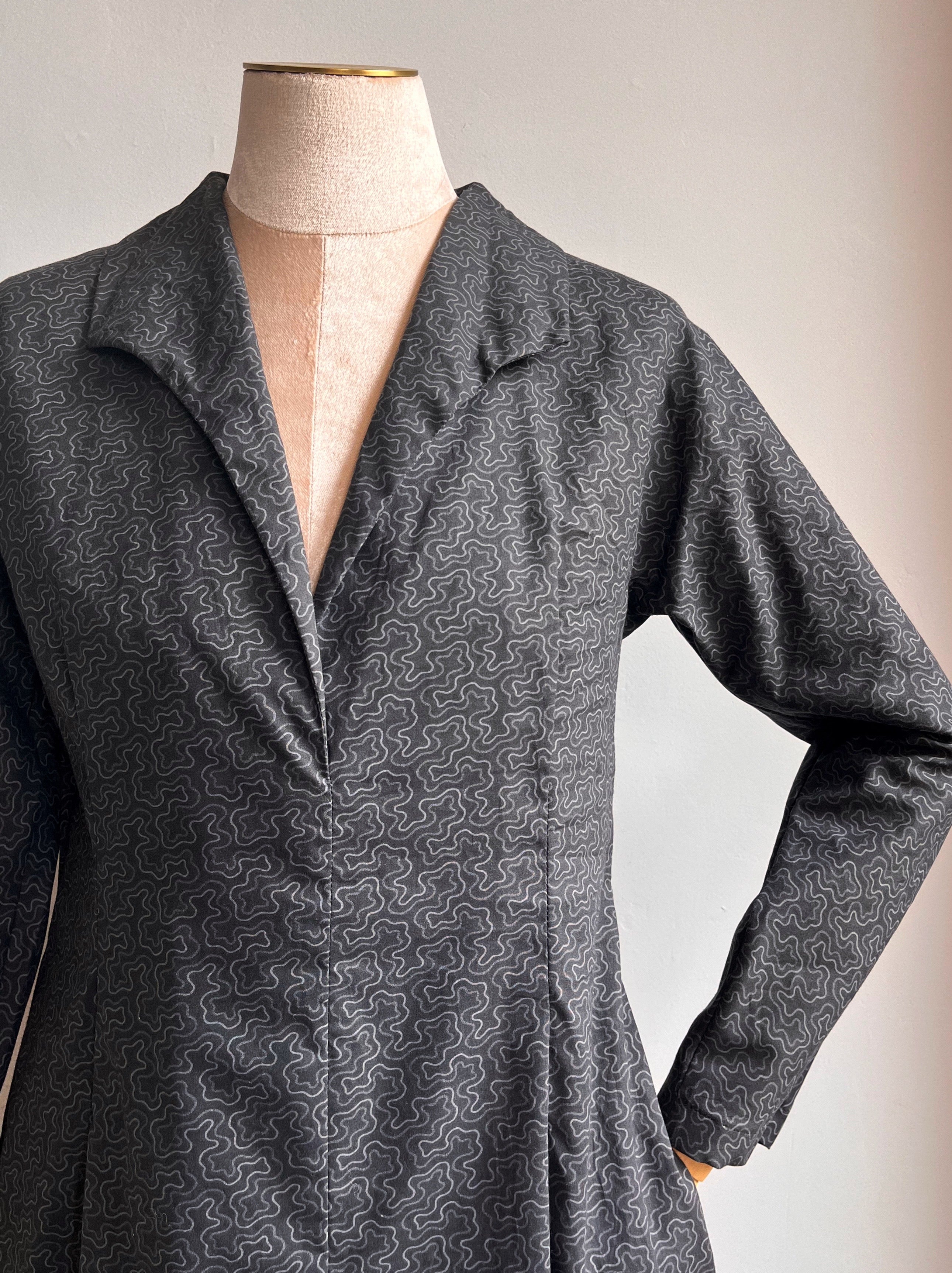 I've been designing and sourcing for design for 35 years as a Creative Director at companies like Ralph Lauren, Tory Burch and even Starwood Hotels for their St. Regis brand and others, so I had some connections and know-how. Made X also brought resources to the table. My family has been in antiques for decades and so I found printed fabrics - presumably local - from 150 years ago. I saw modernism in them and re-colored them to make sense today and ran my own fabric production. I make blouses and dresses from these on really exquisite cotton lawn from Liberty of London. I also use them as signature linings which maybe nobody else does. I wanted buttons I couldn't find anywhere in a soft, silent, felty-tone pewter so I found a man in the south who casts pewter for reenactment clothing and worked with him to create my own buttons from-scratch. I learned to source like this at Ralph Lauren where we would lean on everyone from the Amish to NASA to create products like nobody else. For fabrics I don't create myself, I tend to work with Savile Row mills and ancient cottage industries because I get a quality and finish above all else, in a world of just the opposite.