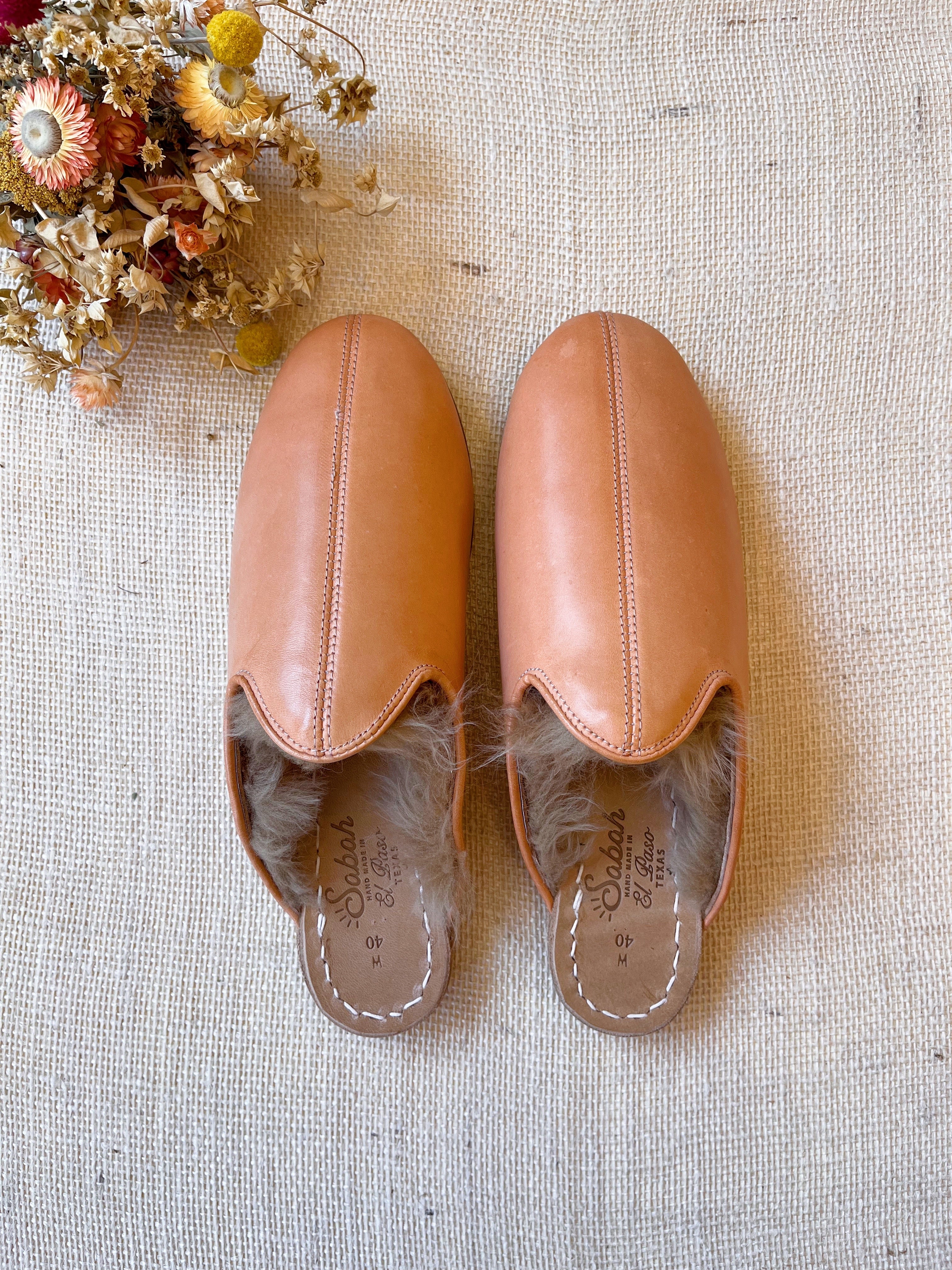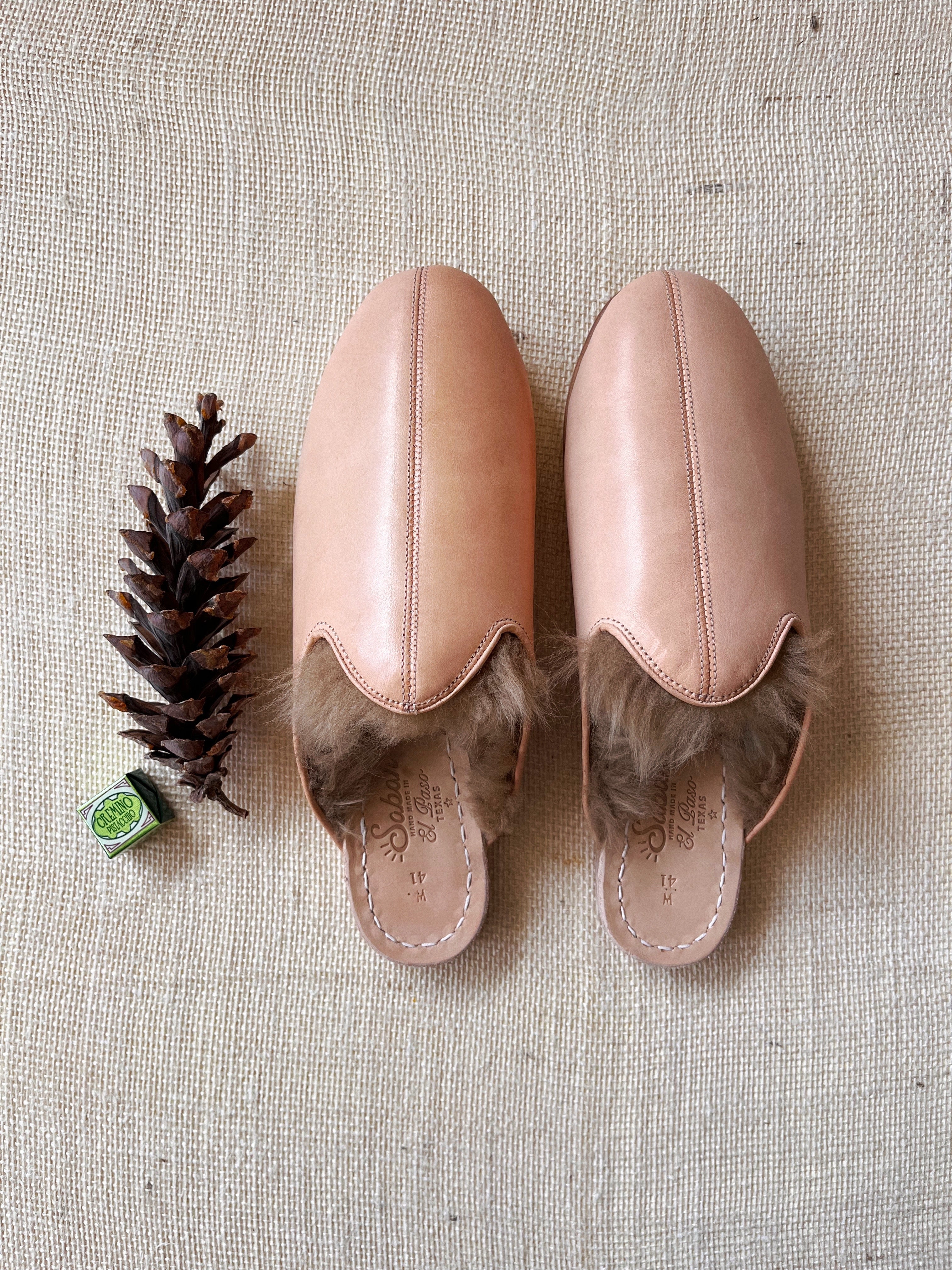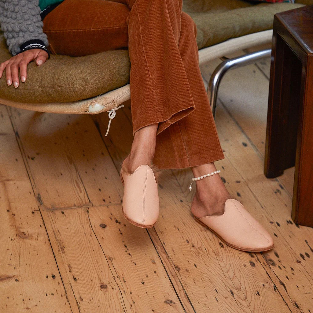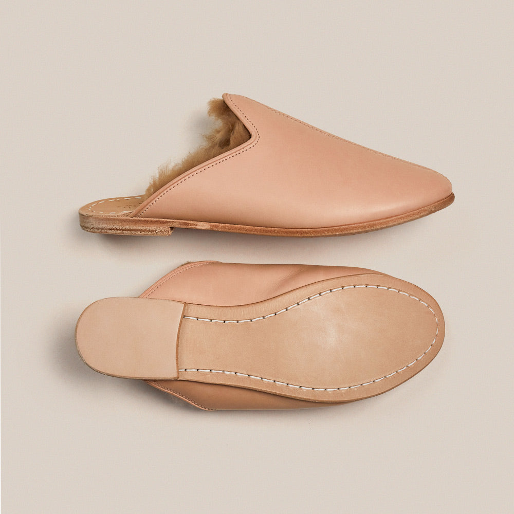Also featured on our Valentine’s Day collection is an outfit that is soft and sexy without being obvious about it. For this one, we’ve paired our MXH Jogger Pants in a super-soft caramel brown wool with a cozy pink jacket in blush pink boiled wool, from upstate designer-maker Brosgé. The jacket is worn over a reworked vintage men’s shirt embellished with soft green hearts, from La Vie Apres L’Amour, which we’ve left unbuttoned most of the way down. And we’ve finished the look with Sabah’s ultra-cozy shearling lined leather slip-ons and an MLE Gentlewoman’s Agreement necklace in Duet, a gold and silver combo that also makes an excellent gift!