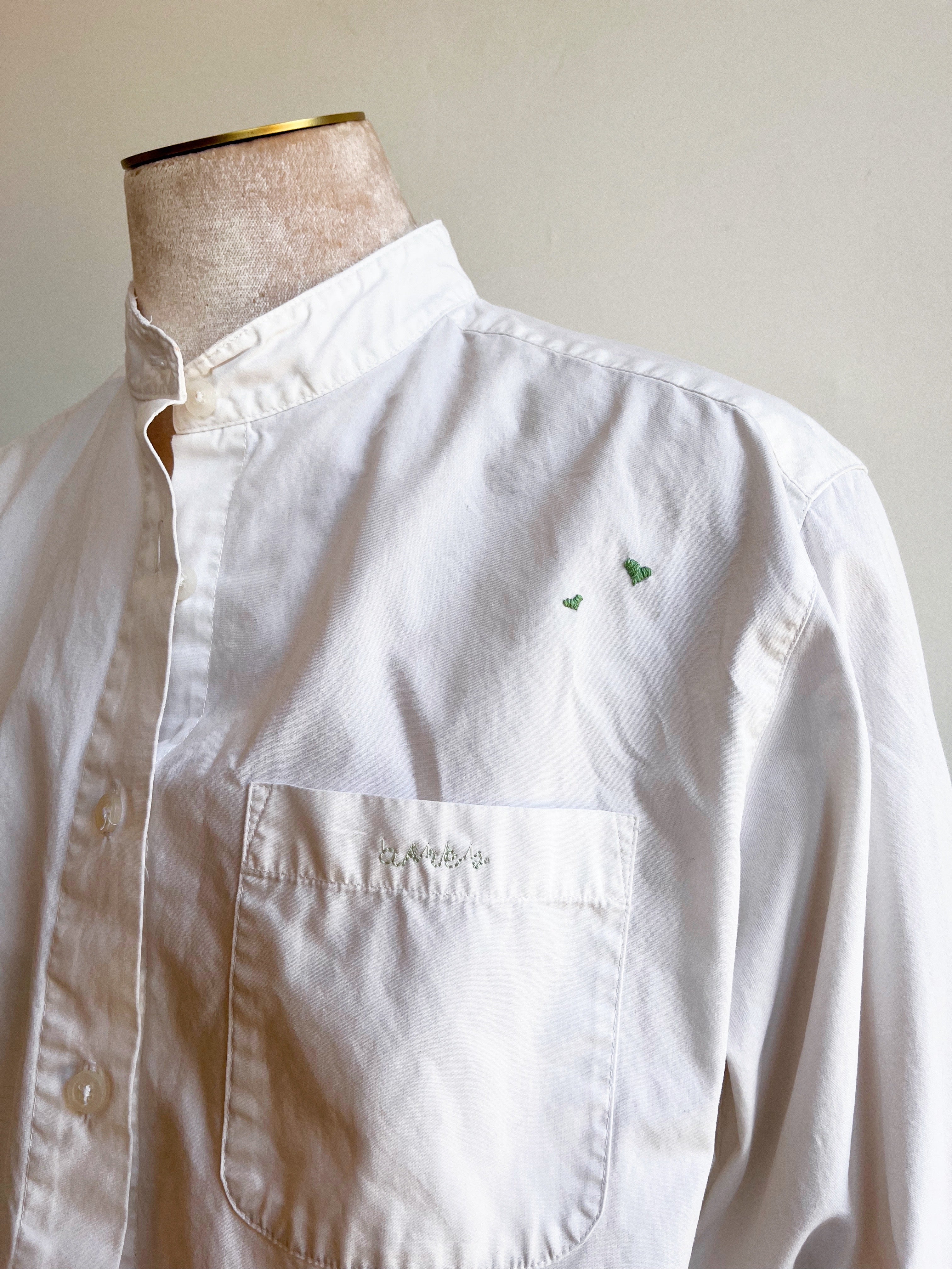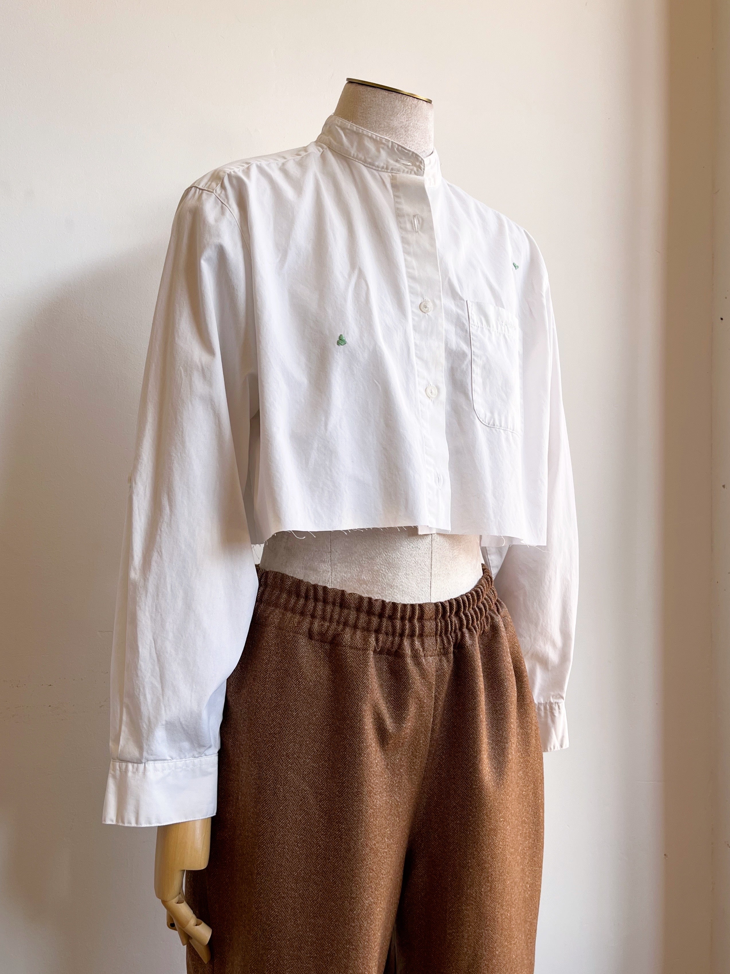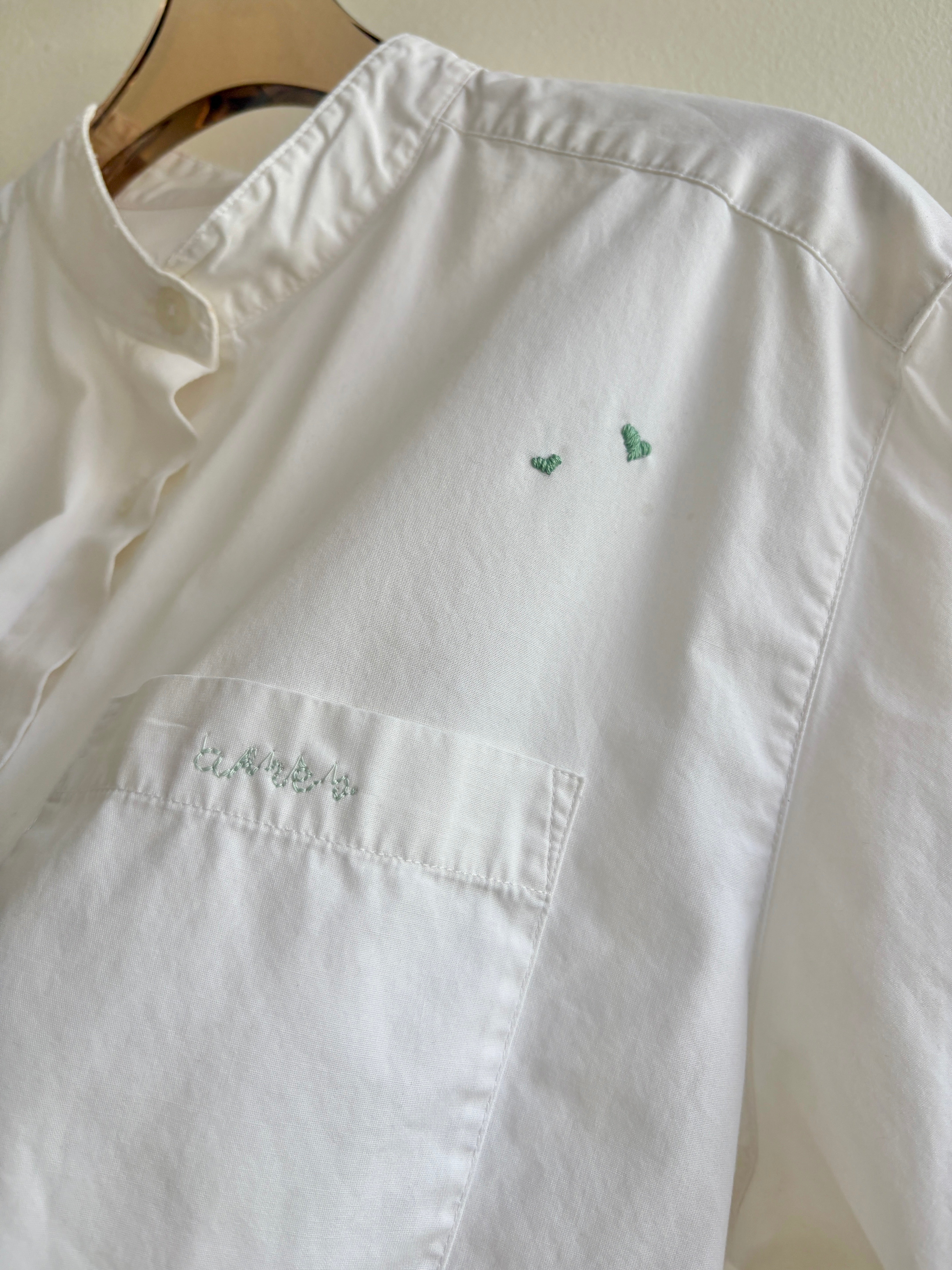 Also featured on our Valentine’s Day collection is an outfit that is soft and sexy without being obvious about it. For this one, we’ve paired our MXH Jogger Pants in a super-soft caramel brown wool with a cozy pink jacket in blush pink boiled wool, from upstate designer-maker Brosgé. The jacket is worn over a reworked vintage men’s shirt embellished with soft green hearts, from La Vie Apres L’Amour, which we’ve left unbuttoned most of the way down. And we’ve finished the look with Sabah’s ultra-cozy shearling lined leather slip-ons and an MLE Gentlewoman’s Agreement necklace in Duet, a gold and silver combo that also makes an excellent gift!
