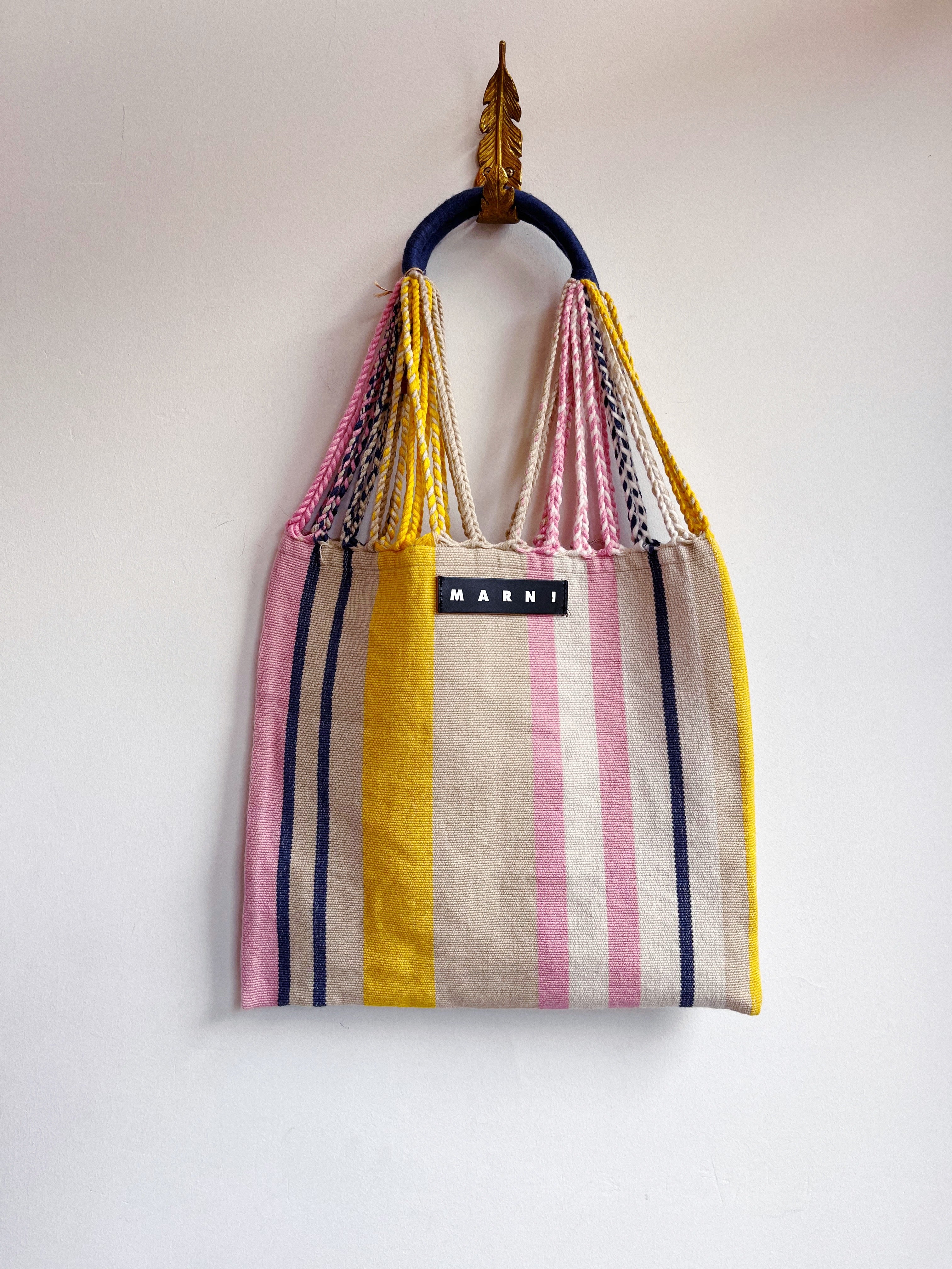 It’s HOT around here — that time of year where it’s a struggle to stay cool but look cute while doing it. We just got in this ridiculously chic little halter top from Sloppy Seconds, with an asymmetric hemline, and couldn’t wait to throw it over a freshly sewn pair of our MXH Town Shorts in our fave moss hemp-cotton blend (a lightweight canvas that doesn’t wear stiff or heavy), the perfect neutral. And then we leaned into stripes on stripes with florals, adding a breezy, striped Marni hammock tote (secondhand, new with tags) and a hand-painted Juda Leah baseball cap (painted right down the street here in Catskill) for a jolt of color. The blue-and-white striped fabric of the halter top is just as versatile as the army brown-green of the shorts — mix and match it with the rest of your wardrobe until you get the urge to throw a cardigan over it when the temps start to dip.