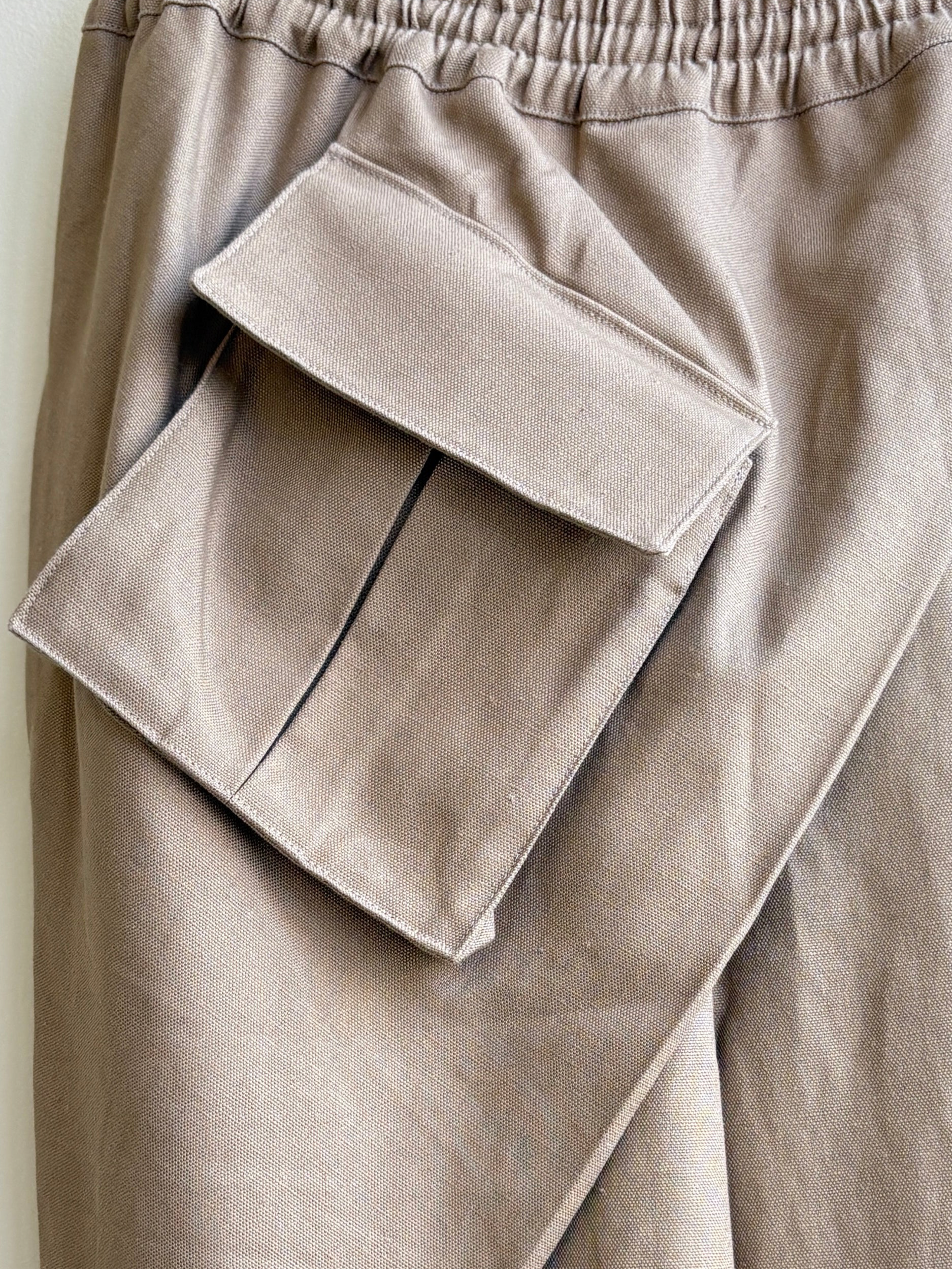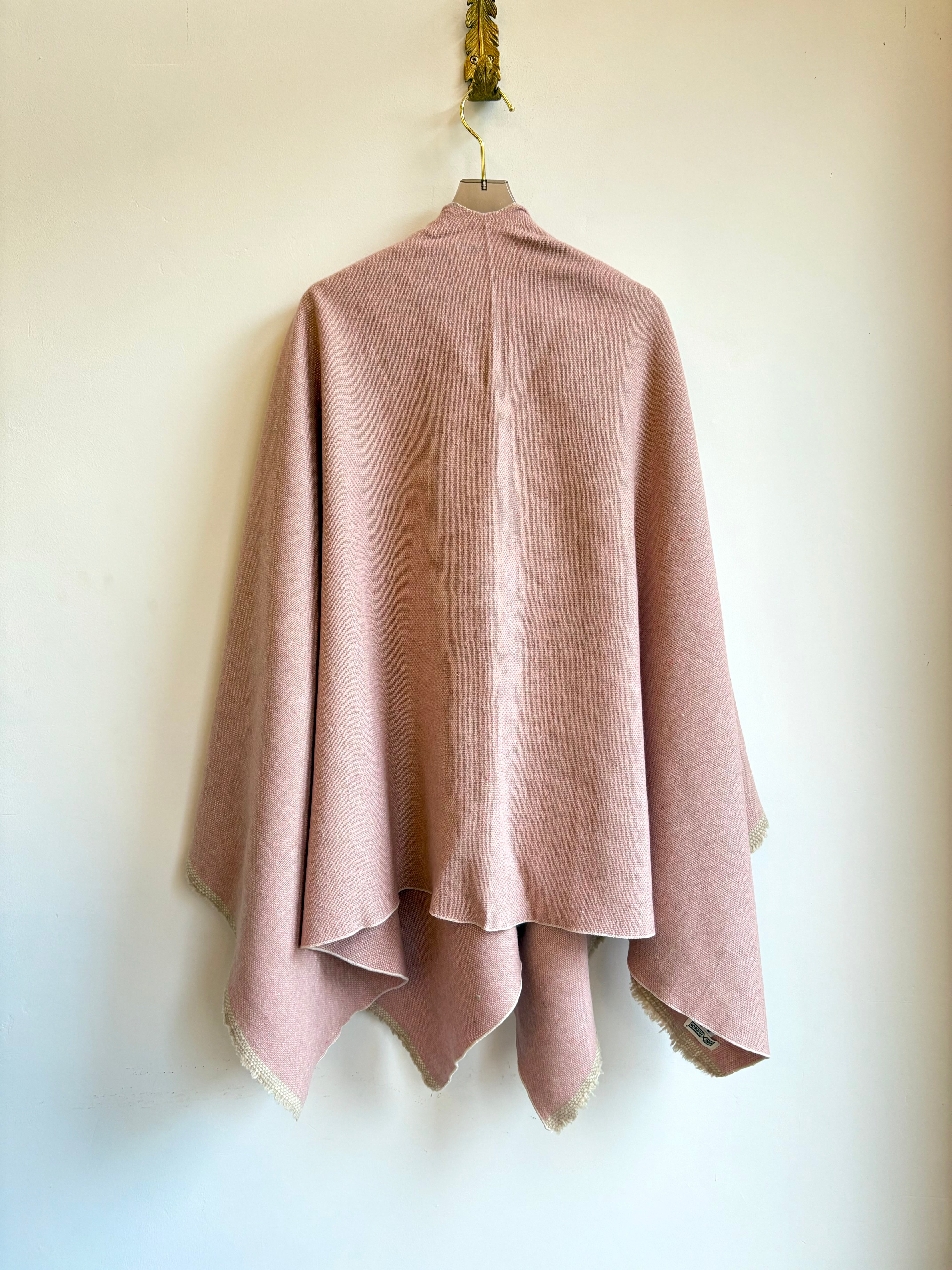Maybe it’s Spring Fever, but we’re really feeling the soft pinks with nutty browns lately. (See also: Pretty in Pink) This look centers on the incredible hand-woven and quilted, sweatshirt-style top by Shino NYC (available in more colors), which we’ve dressed up a bit with a gold chain and our Zero-Waste Reversible Cape in super cozy blush wool. They’re worn with our funky draped-front cropped joggers in a khaki cotton canvas. And finishing off the outfit is a hand-crocheted drawstring bag. It’s a look that manages to be both warm and Spring-feeling at the same time, built on season-spanning separates that can be worn a hundred different ways.