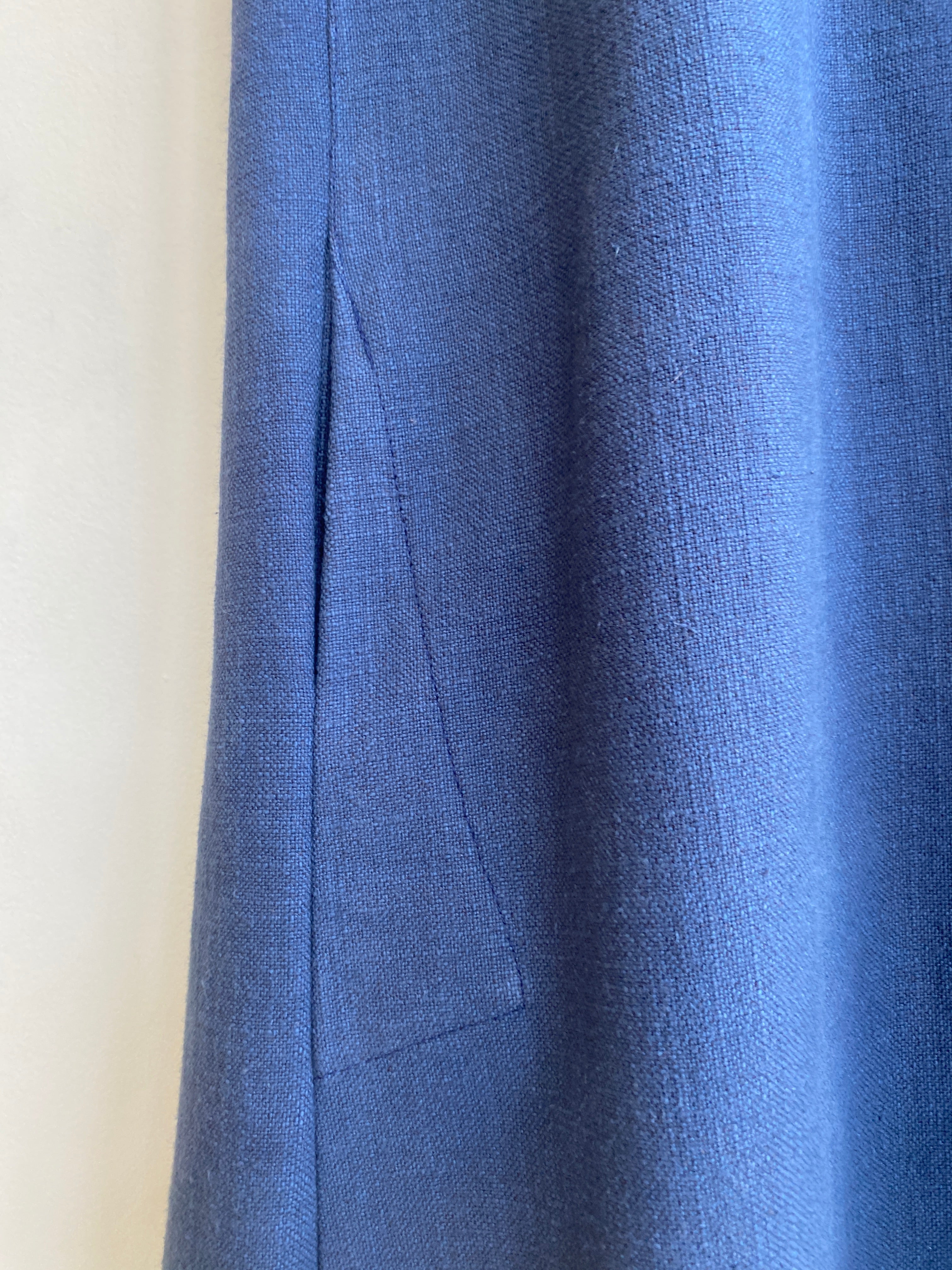 I begin with the piece of fabric, as the available quantity of fabric and the qualities of the fabric determine what type of garment can be made of it. Sometimes what it can be made into jumps right out at me, other times I look through my notes, books and sketches to see what would be a good match. Sometimes the color ‘asks’ for a certain type of garment. Of course, sometimes the match between fabric and design doesn’t work out so well and then I have to use the piece for scraps. There always is a moment of terror before I cut into a piece of fabric.