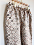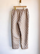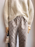 When you want the ease of sweatpants while still looking put together, our MXH Jogger Pant is just the thing. Side-seam pockets keep the silhouette clean, while the triple-channel elastic waistband looks polished and lays nice and flat. This pair is made from a deadstock lightweight jacquard fabric with bronze flowers and square medallions over a shimmery taupe base. Dress them up or down! (Pictured with Endery boucle sweater.)