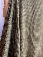 - Honeycomb textured knit fabric in soft green with gold shimmer