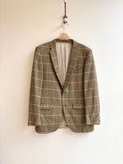 - Vintage suit jacket in green, orange, and brown houndstooth plaid