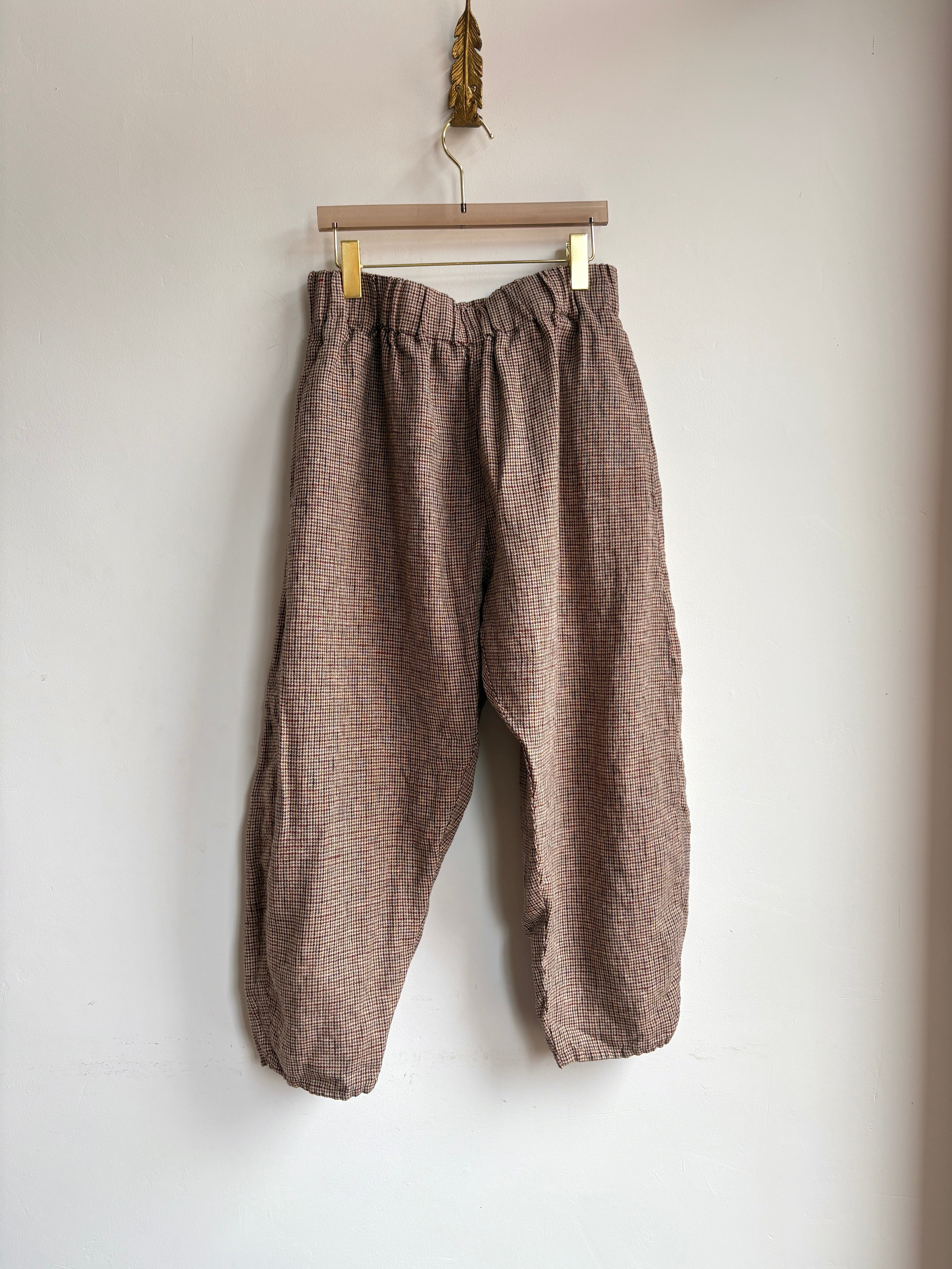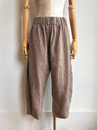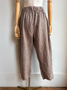 Brosgé’s easygoing Studio Pants are among our bestsellers — popular with customers of all ages and genders. They are ankle-length barrel pants with generous side-seam pockets, topstitching, and a wide, flat elastic waistband. These pants look great with sandals, chunky boots or your favorite sneakers. Pre-washed and dried to minimize shrinkage.
