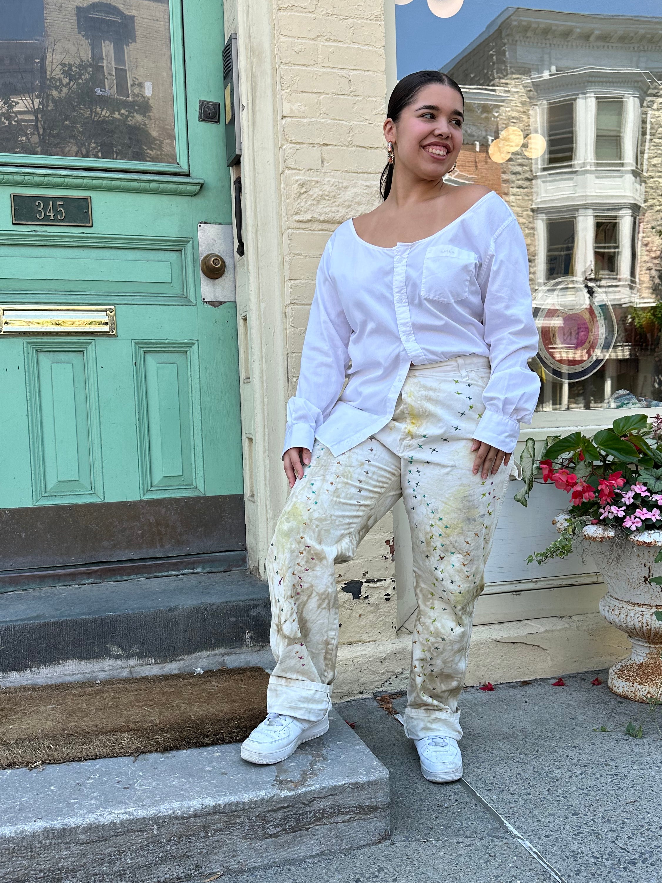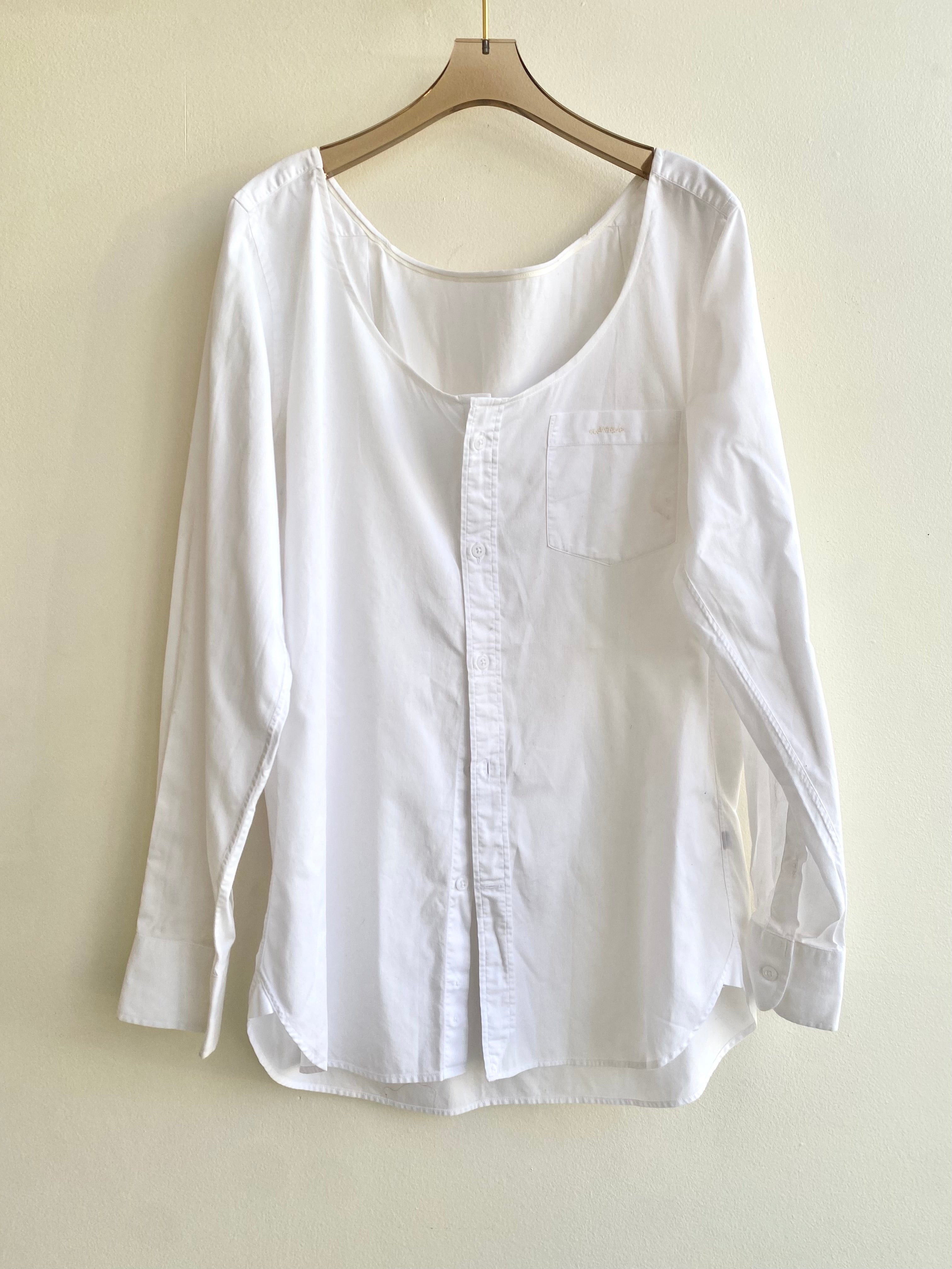 This Stark White Elizabeth Off-The-Shoulder Top is a designer Apres L'Amour creation, made with a sustainable approach using upcycled men's shirting. Support a woman owned business and look stylish while reducing your environmental impact.