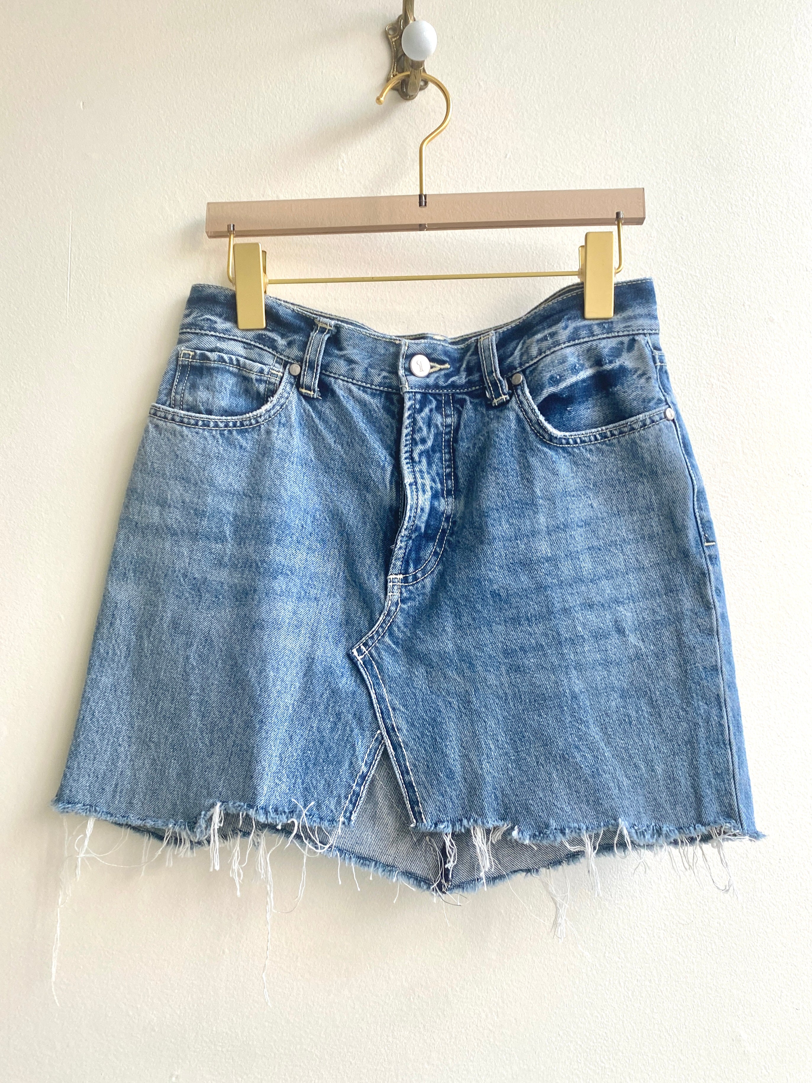 Upcycled Raw Hem Denim Skirt (Reworked)