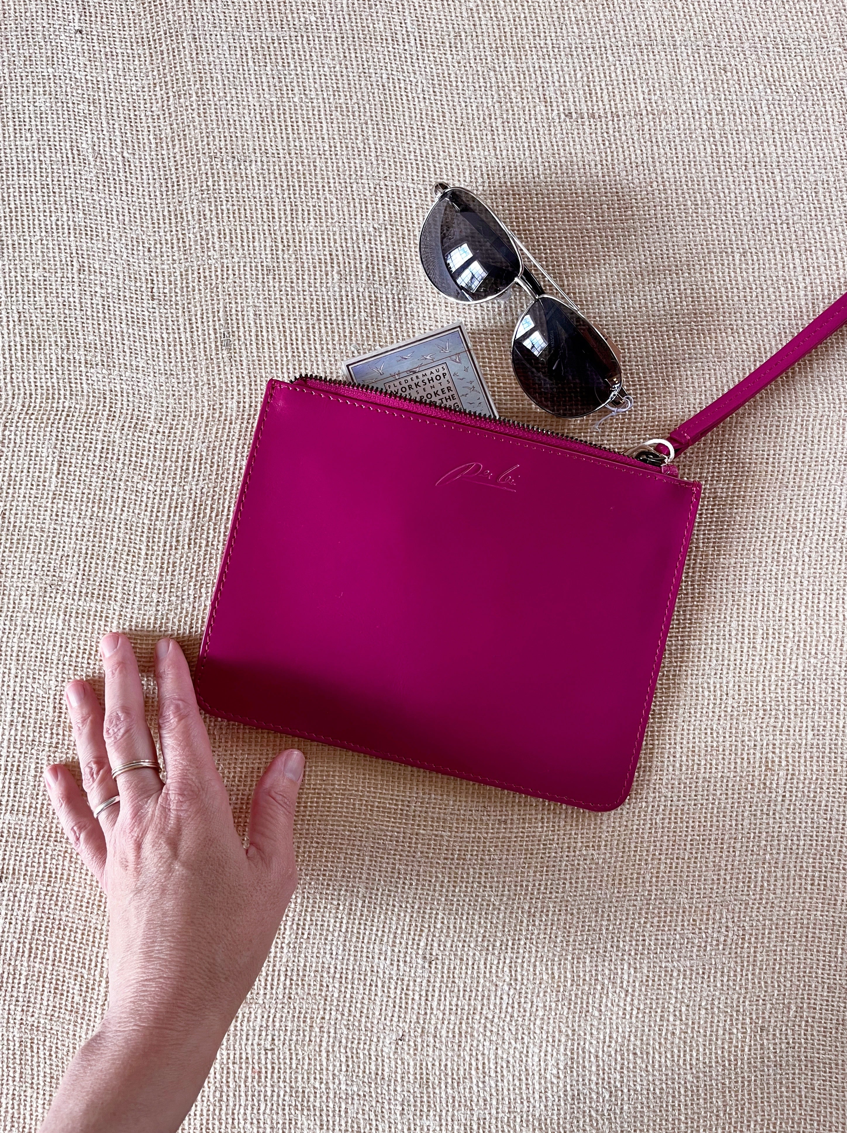 Perfect for running a quick errand, The Emery Leather Wristlet Pouch is roomy enough for a small wallet and your cell phone. Wear as a wristlet when out for a dog walk or hold as a clutch for date night.
