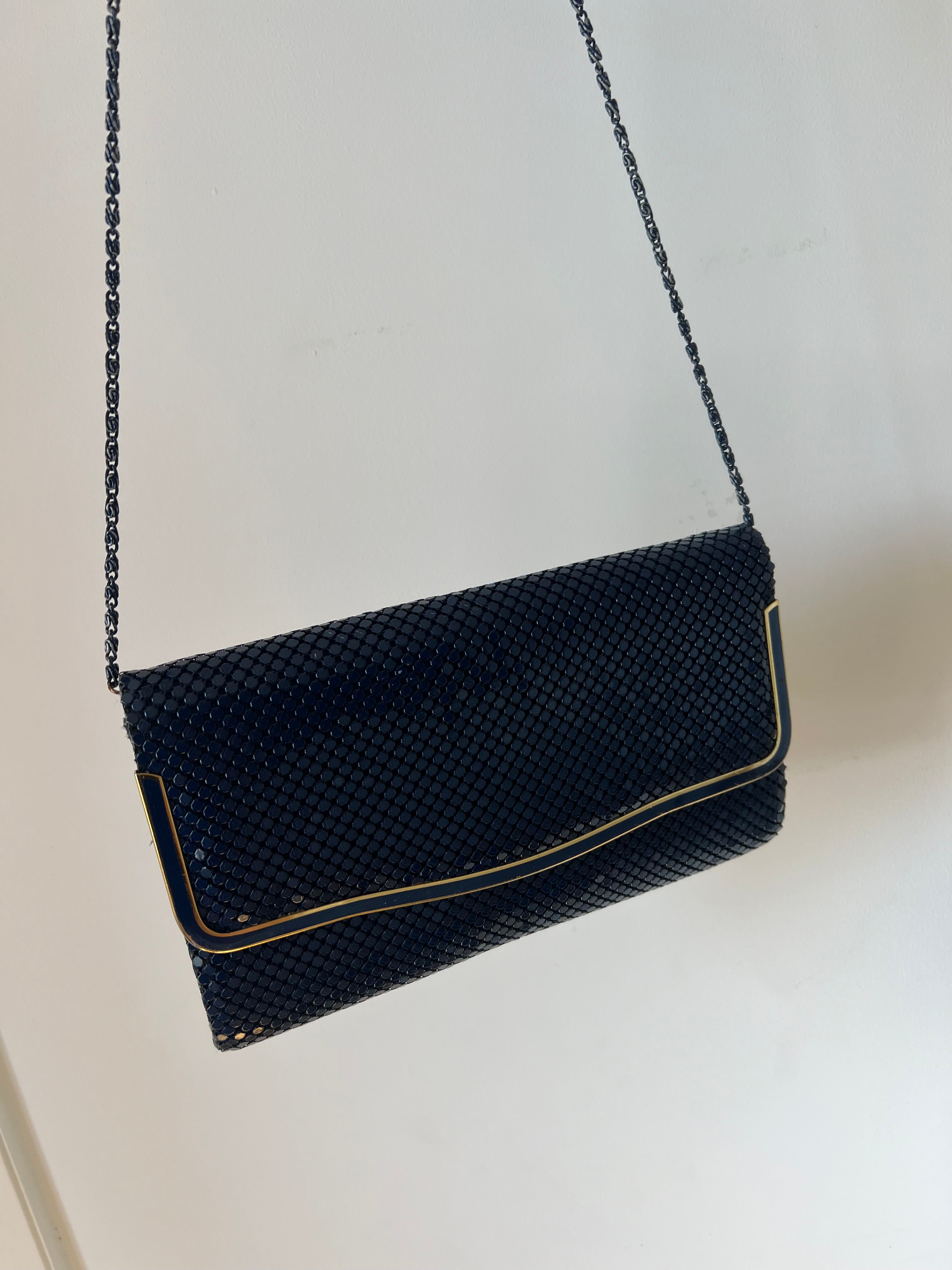 Navy Blue Flat Metal Mesh Clutch Handbag (Vintage)