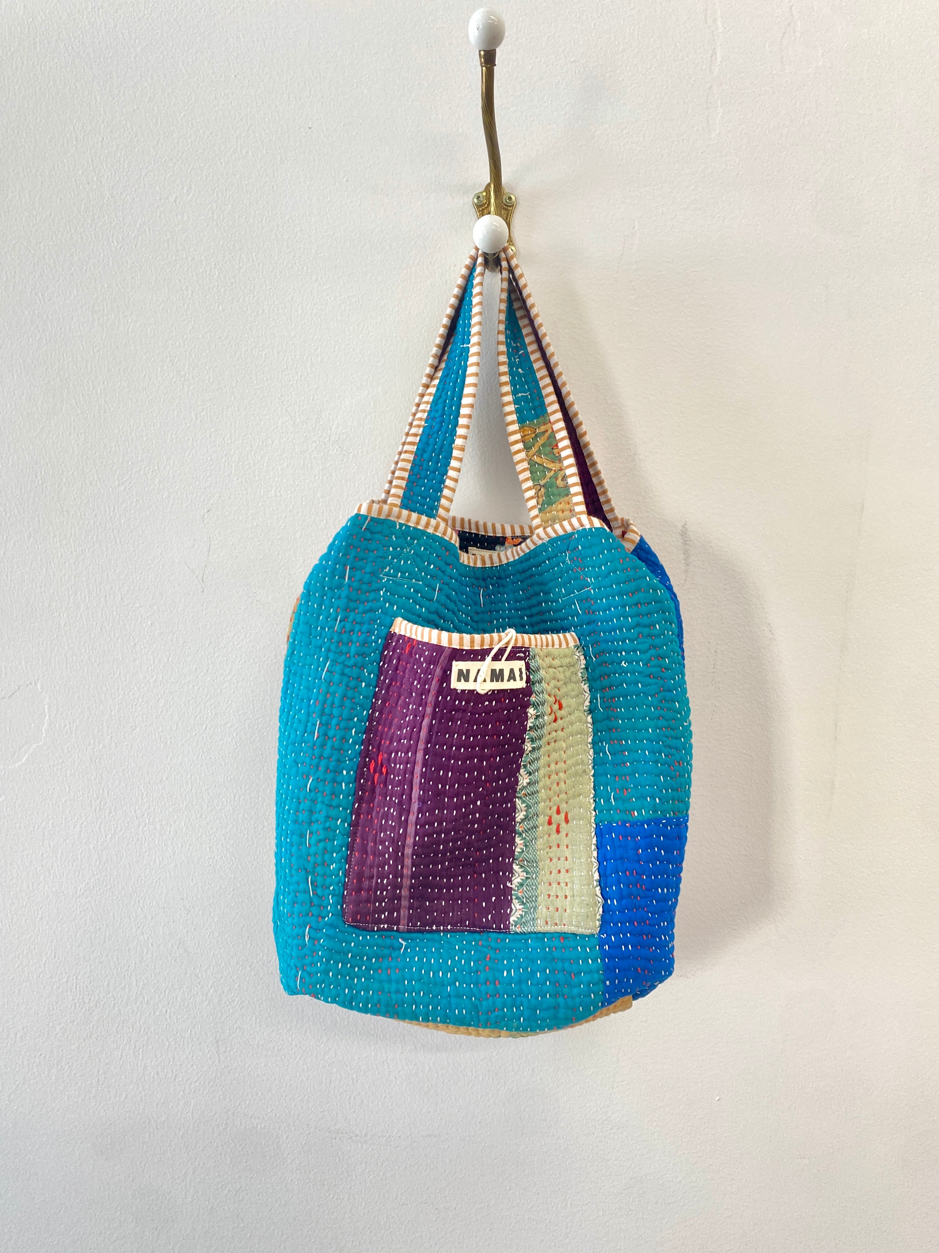 About the Textiles Used: The Xoti tote bag is made from remnants of vintage Kantha quilts that were used to make jackets and other items, for a truly zero waste product. The original patina of the fabric includes areas of fraying, patches and an age-softened feel.