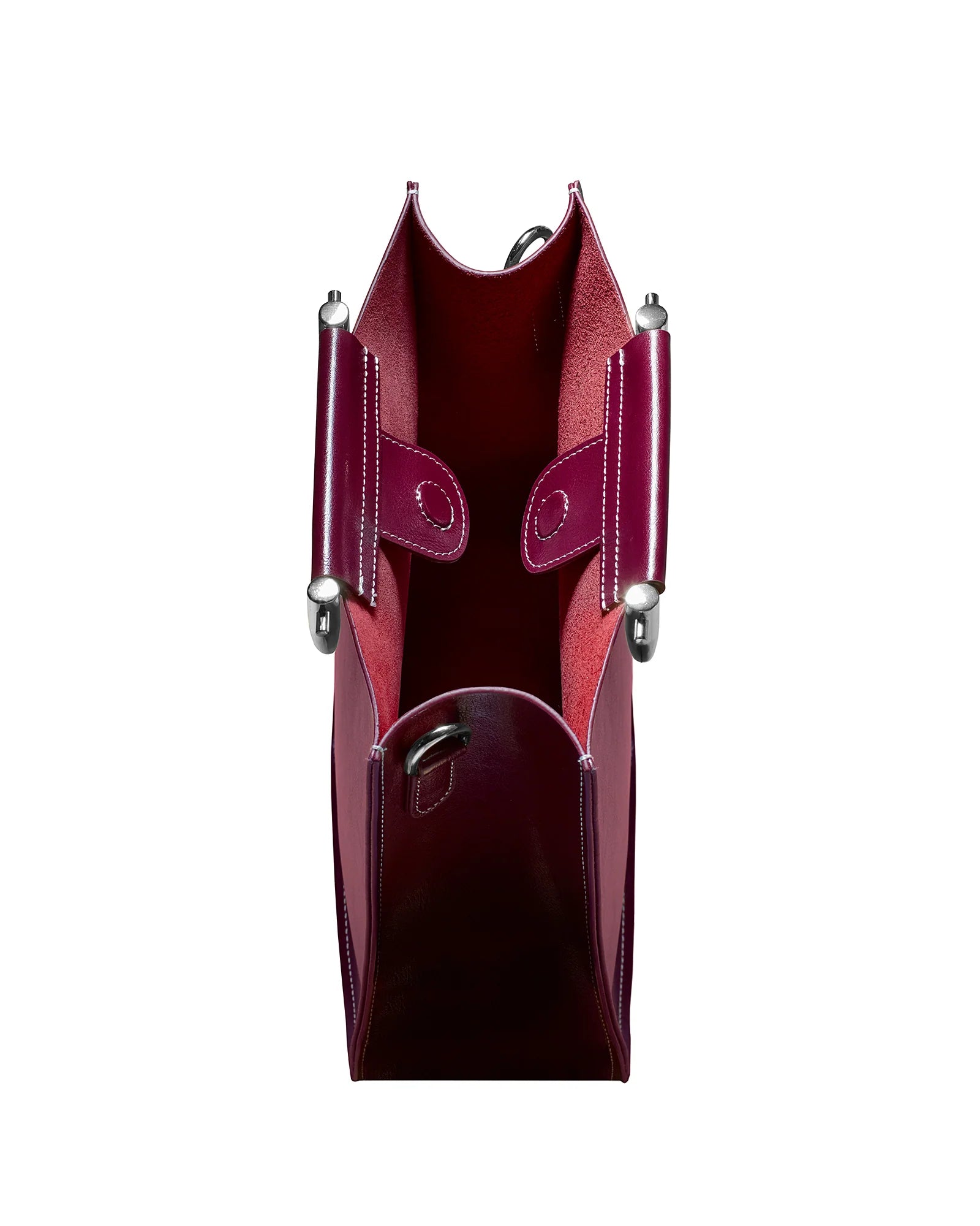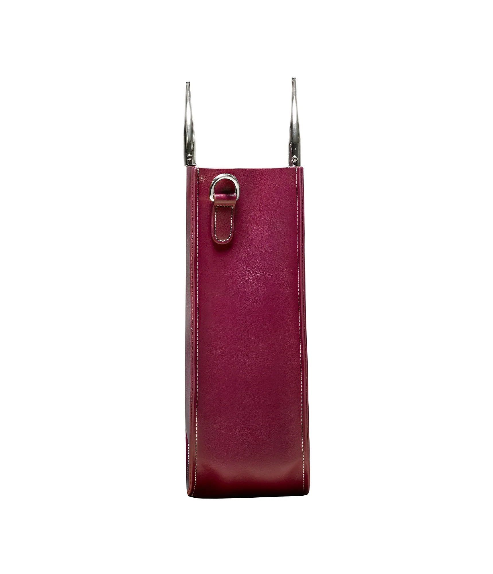 Cowhide Leather Tote in Plum - a stunning creation boasting a rich, eye-catching plum color that effortlessly embodies elegance, complemented by gold-finish metal hardware.Crafted from soft leather, this bag seamlessly combines opulence and durability. This isn't merely an accessory; it's a fusion of refined luxury and meticulous craftsmanship. Every detail, from the immaculate white stitches to the distinctive AMA NWOKE motif, showcases the skilled workmanship invested in its creation.
