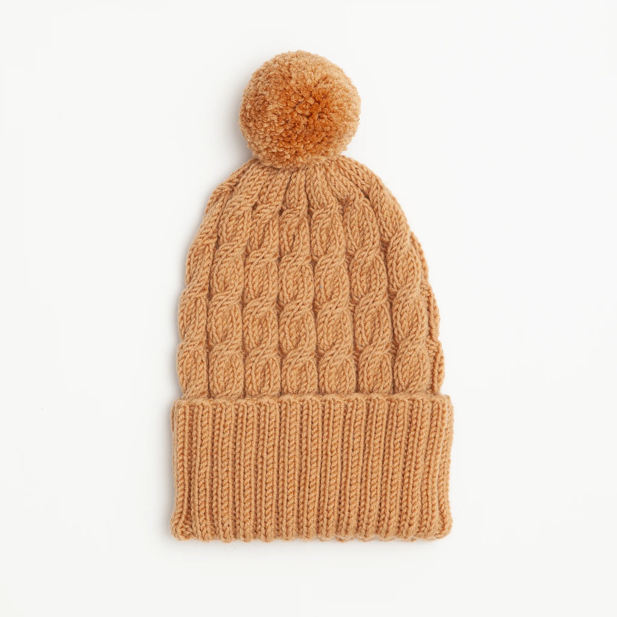 This unisex hat is made from 100% Merino wool. It's produced using zero waste methods and hand knitted with extra fine yarn in a way that is luxuriously soft and thick. The pompom is made from the same yarn as the beanie and is non-removable.