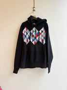 Black Ocean Wave Quilt Block Hoodie w/ Side Seam Ribbing (Reworked)