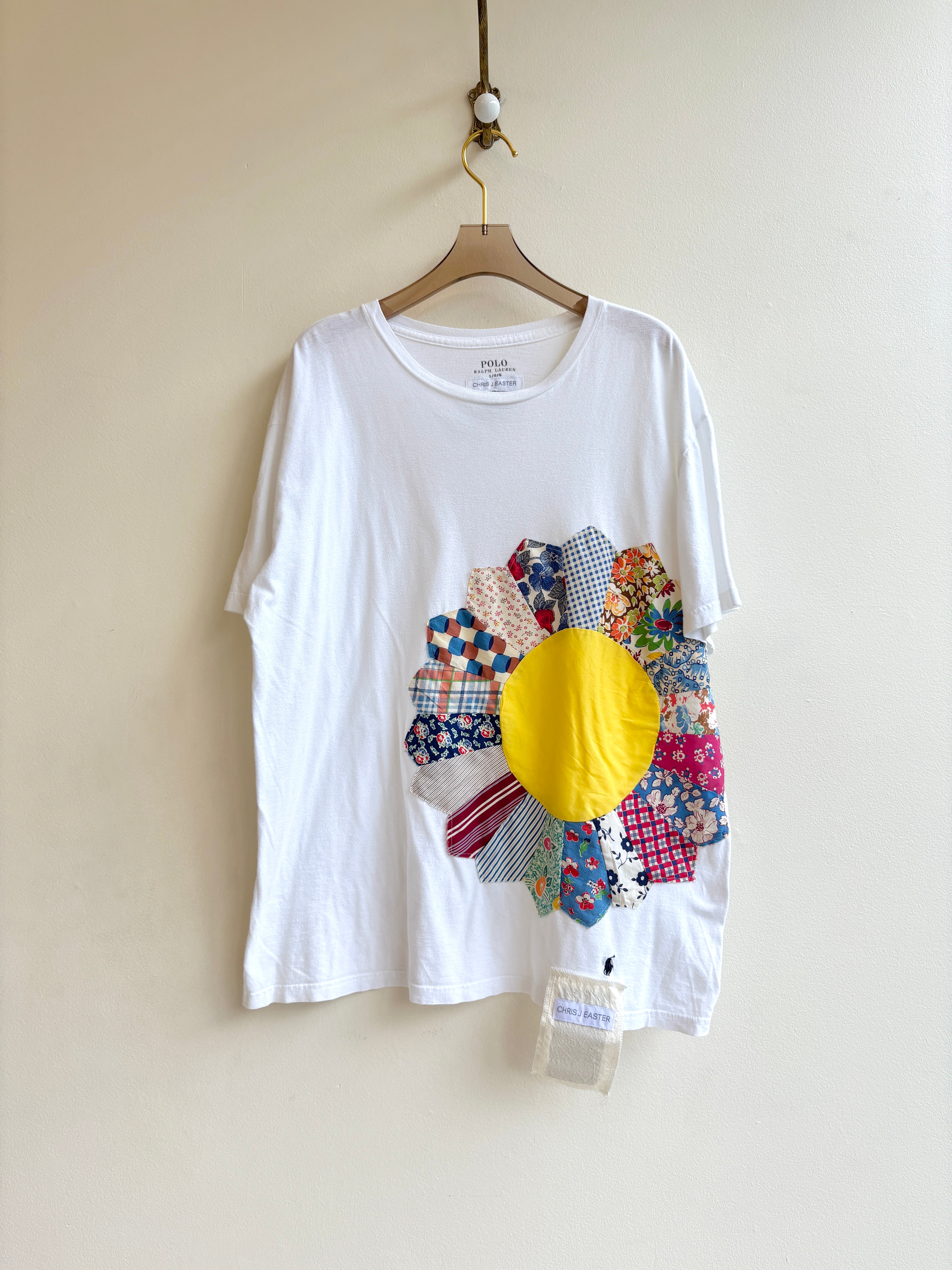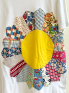 A vintage white tee gets a colorful new life, thanks to the appliqué of a large, vintage Dresden plate quilt block
