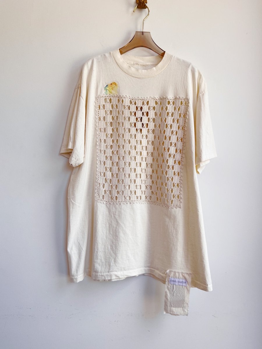 Ivory Rectangular Doily Appliqué Block Tee (Reworked)