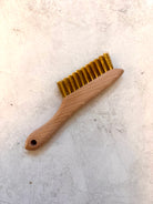 Ditch the disposable roller and pick up this brass bristle lint brush! This works best on woven fabrics like well used couches, drapery, and pillow.