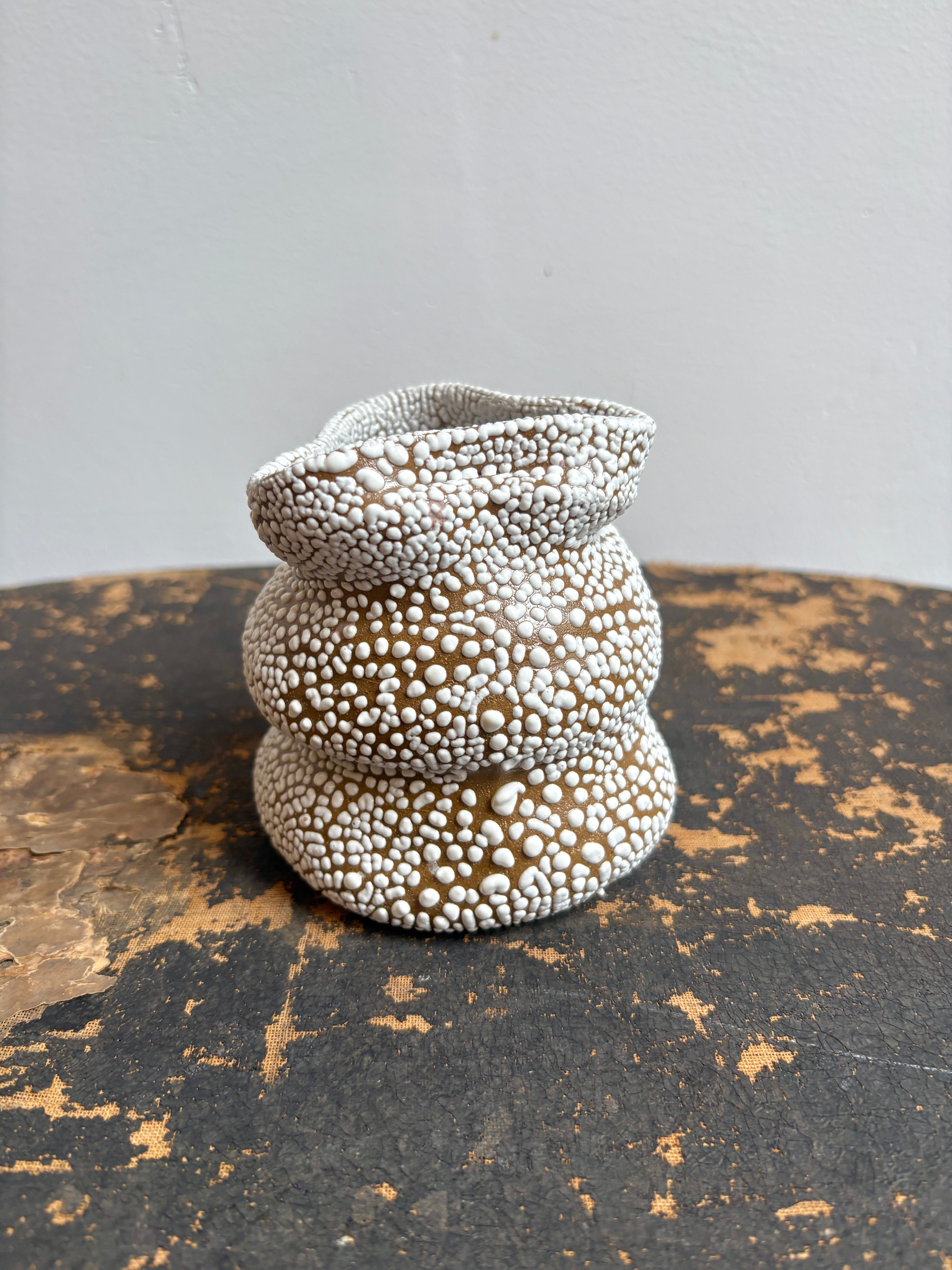 A effortless addition to any dining table, shelf, or night stand this crawling glaze textured bud vase by Kendall Ross Ceramics will add character wherever it's placed.