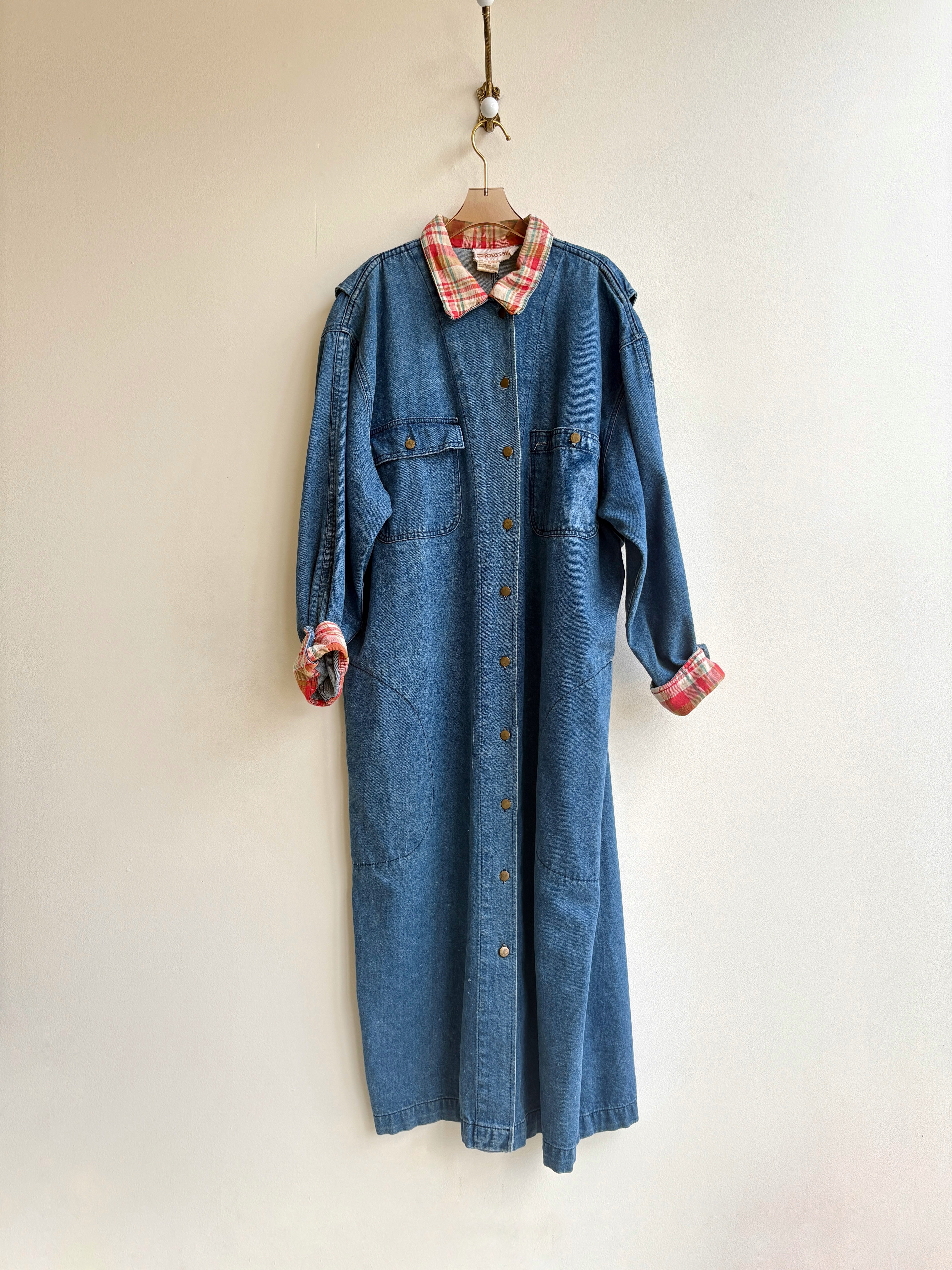 Alain Toussaint | Long Denim Trench with Flannel Collar & Cuff Lining (Vintage)