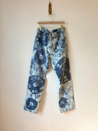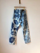 These light wash jeans have a true vintage feel with hand dyed texture and a well-worn cotton denim. Made for comfort and timeless style, they’re a go-to for everyday wear with a retro edge. Features asymmetrical tie dye texture over medium weight vintage Lee jeans.
