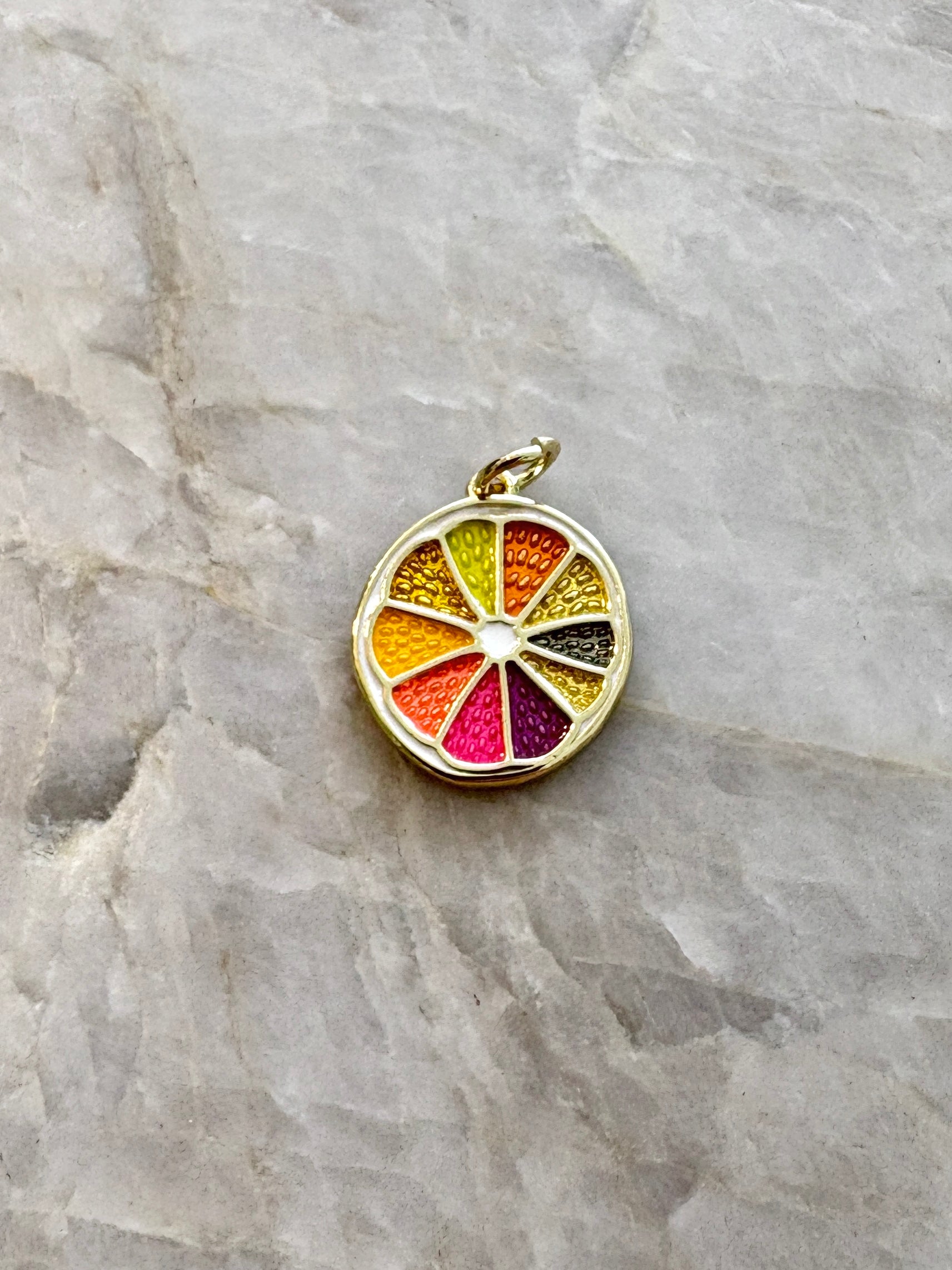 14K Gold Plated Orange Slice Enamel Color Charm
