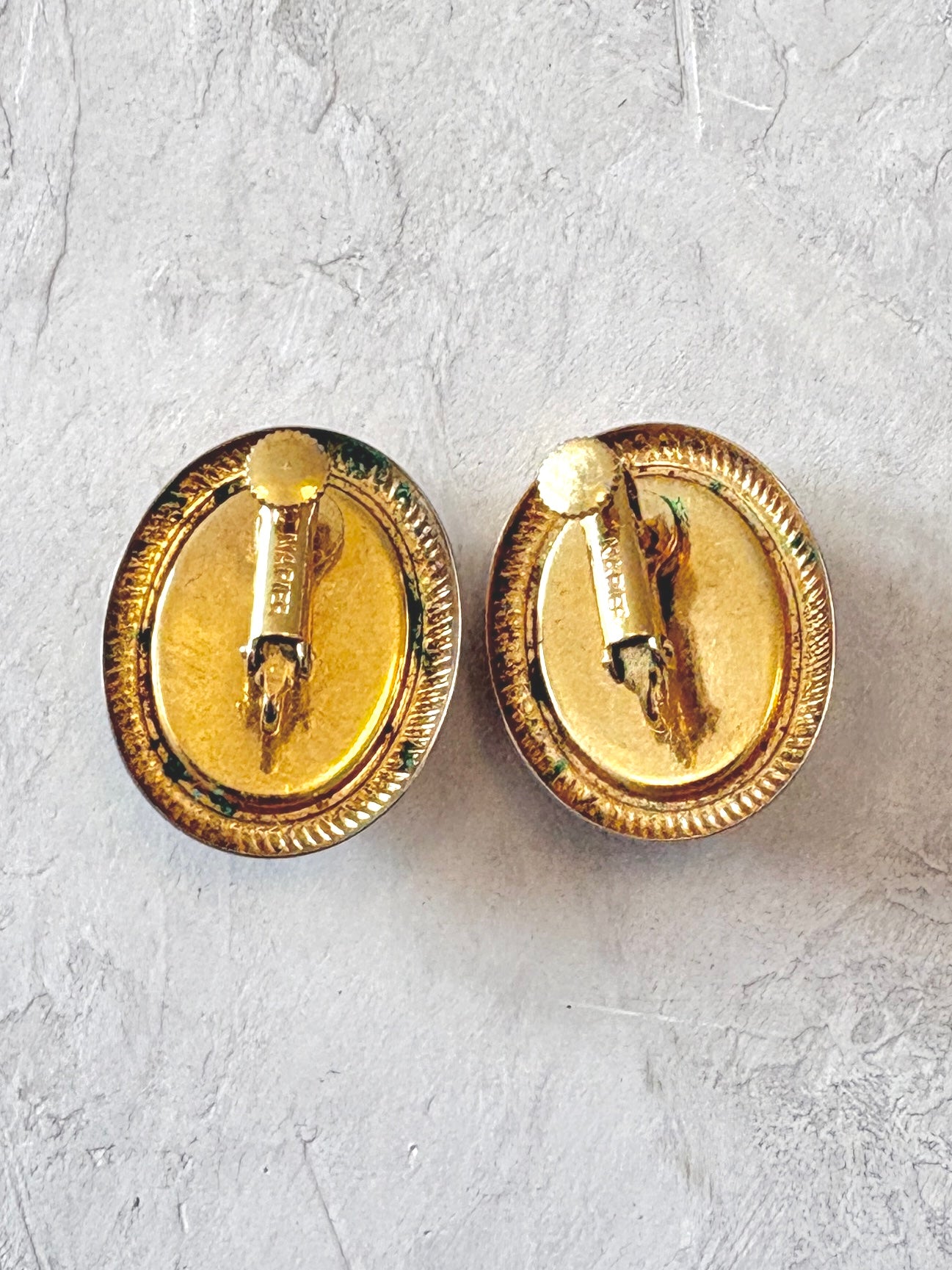 Gold Tone Border and Navy Jackie O Clip On Earrings (Vintage)