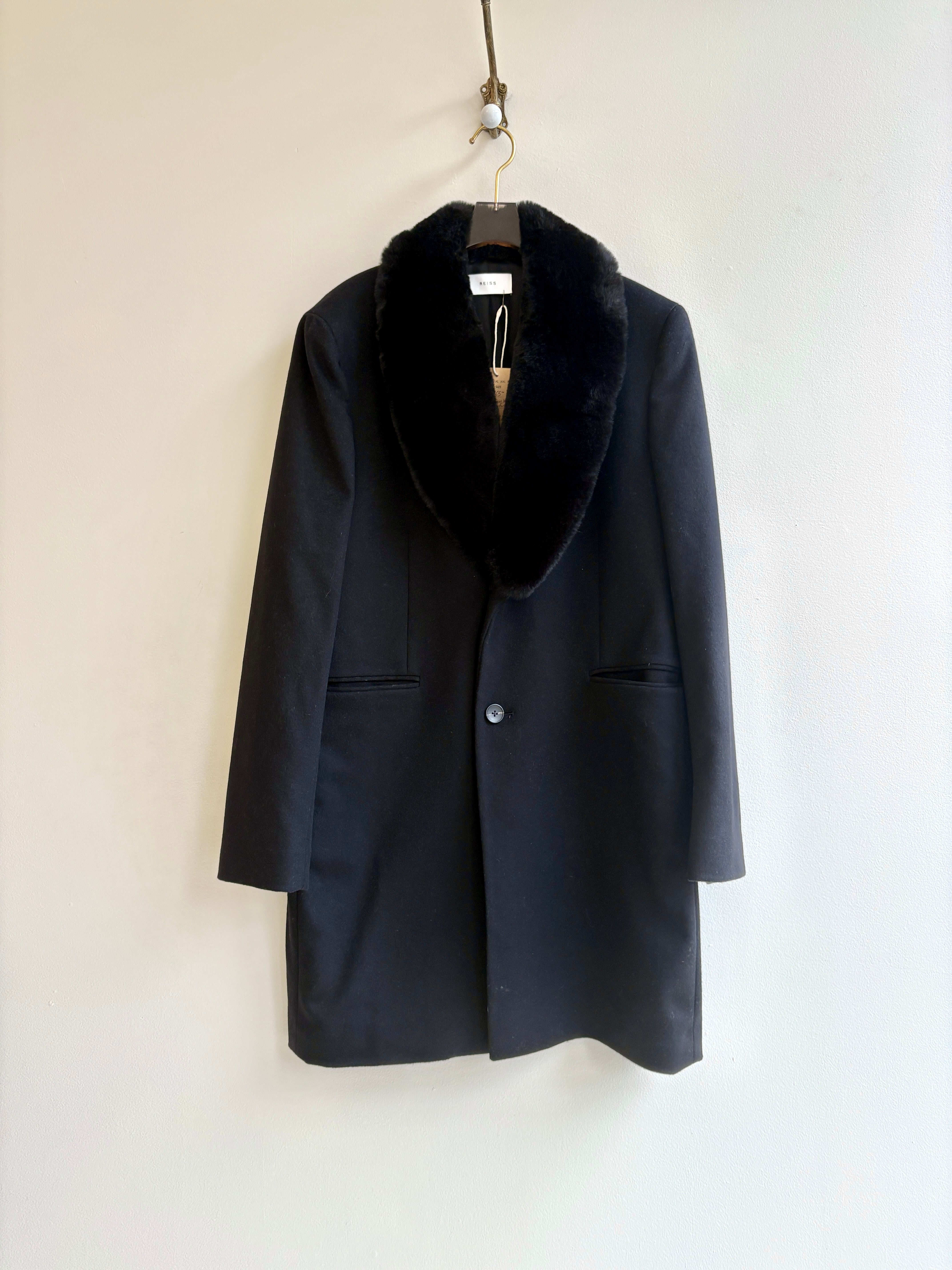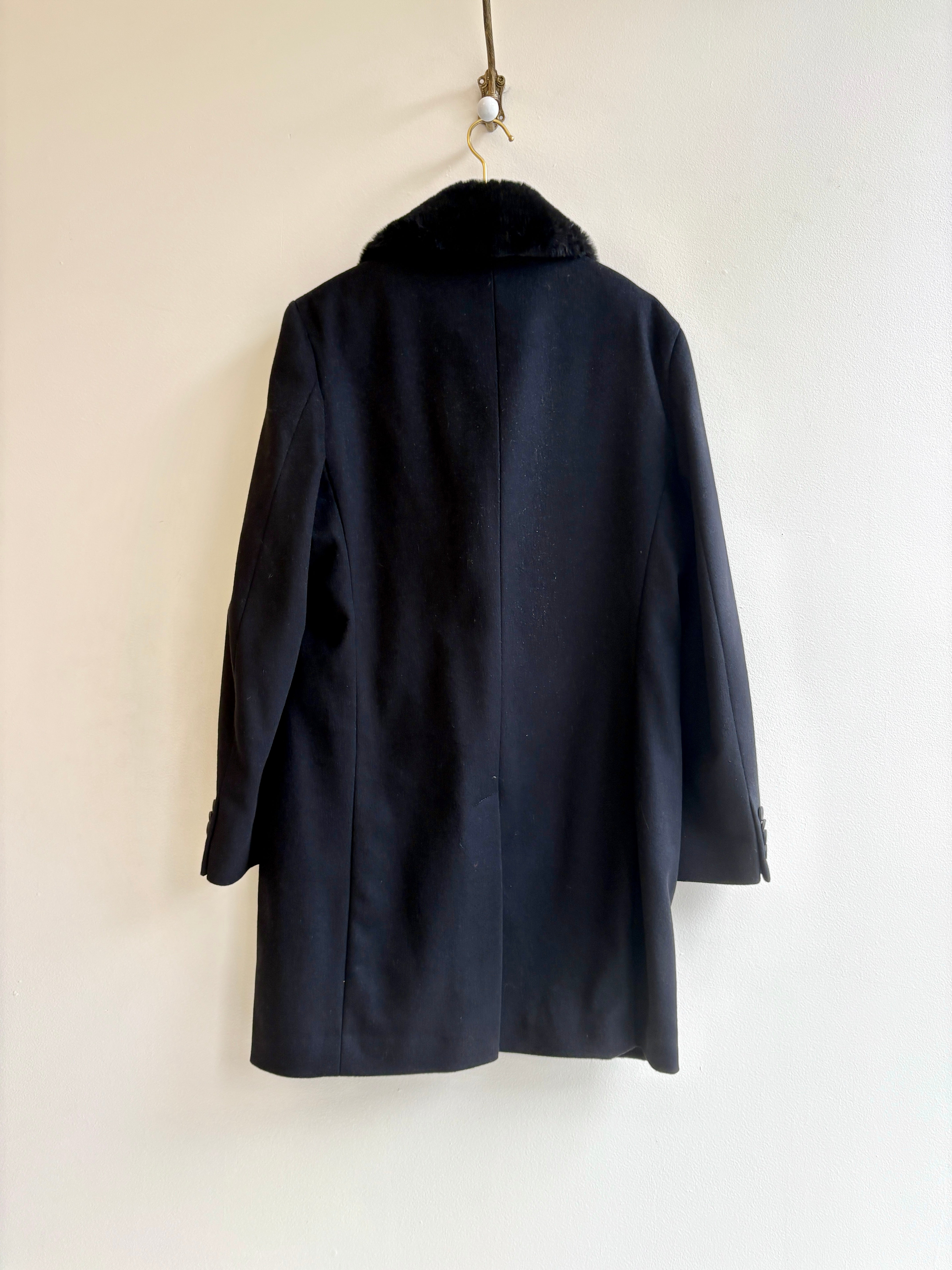 Reiss | Midnight Wool Cashmere and Faux Fur Coat (Vintage)