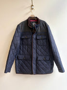 This forest green, light quilted polo jacket is from Eric Vintage. A classic cut, fit, and color for staying cozy in style.