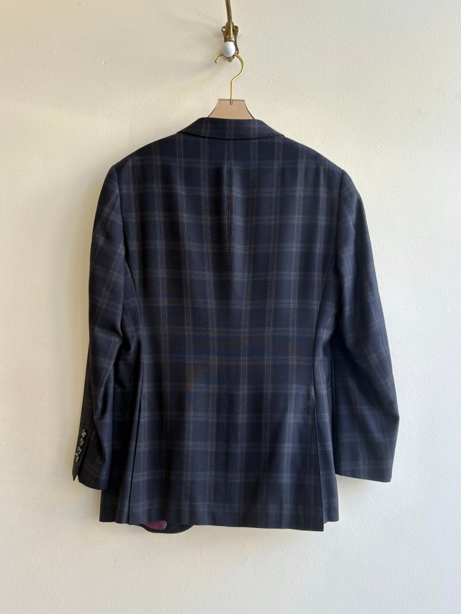- Vintage suit jacket in dark navy plaid with purple lining