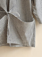 With its easy fit, distinctive origami pockets, folded lapel and front ties, our unisex Chore Jacket is a versatile statement piece that can be worn as outerwear or as you would a blazer or cardigan. This black and white striped version will go just about anywhere, with just about anything!