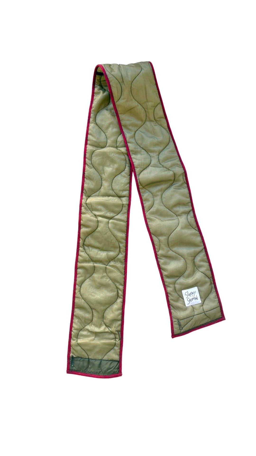Light Olive Green Army Liner Quilted Scarf w/ Red Bias Accent (Reworked)