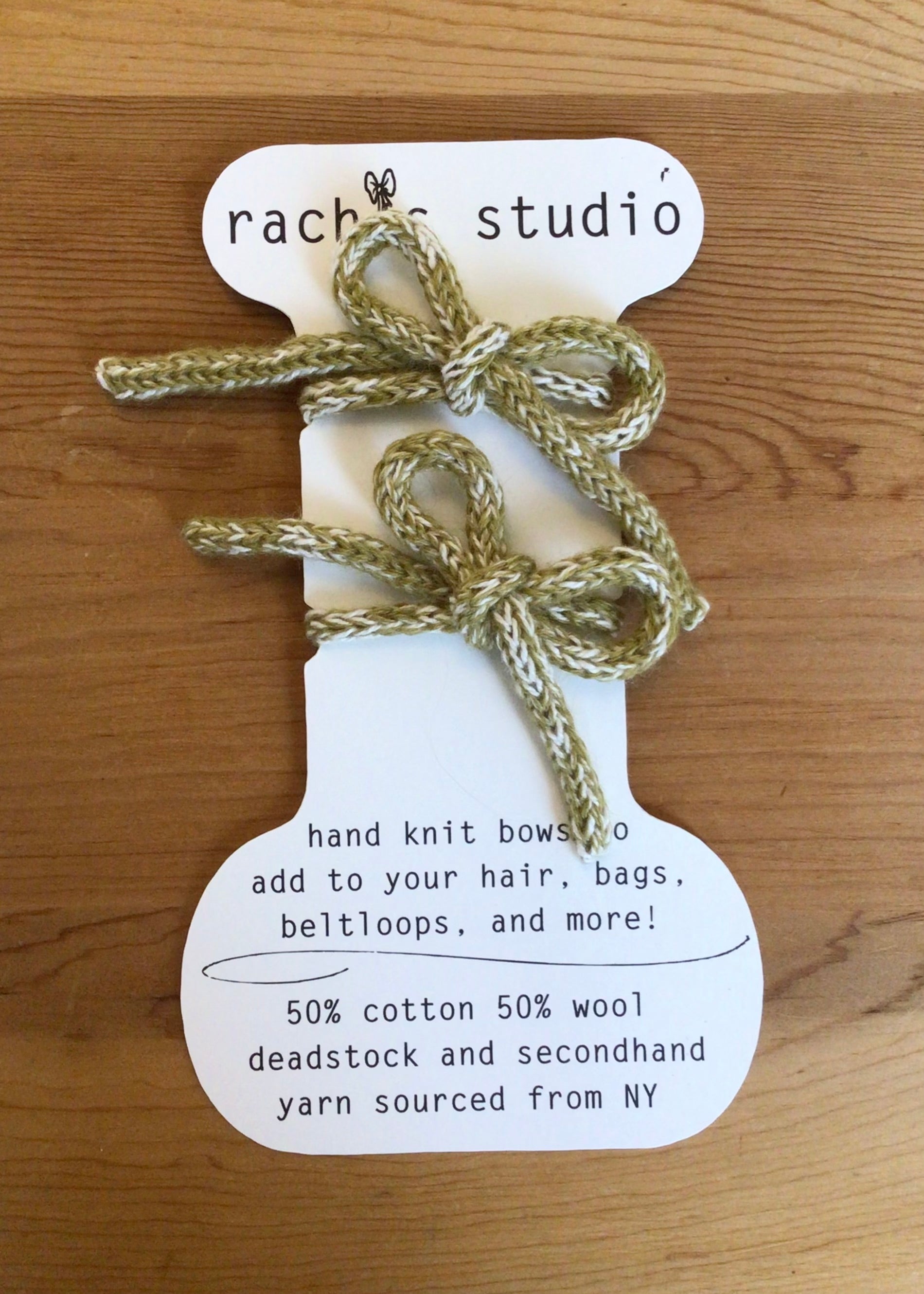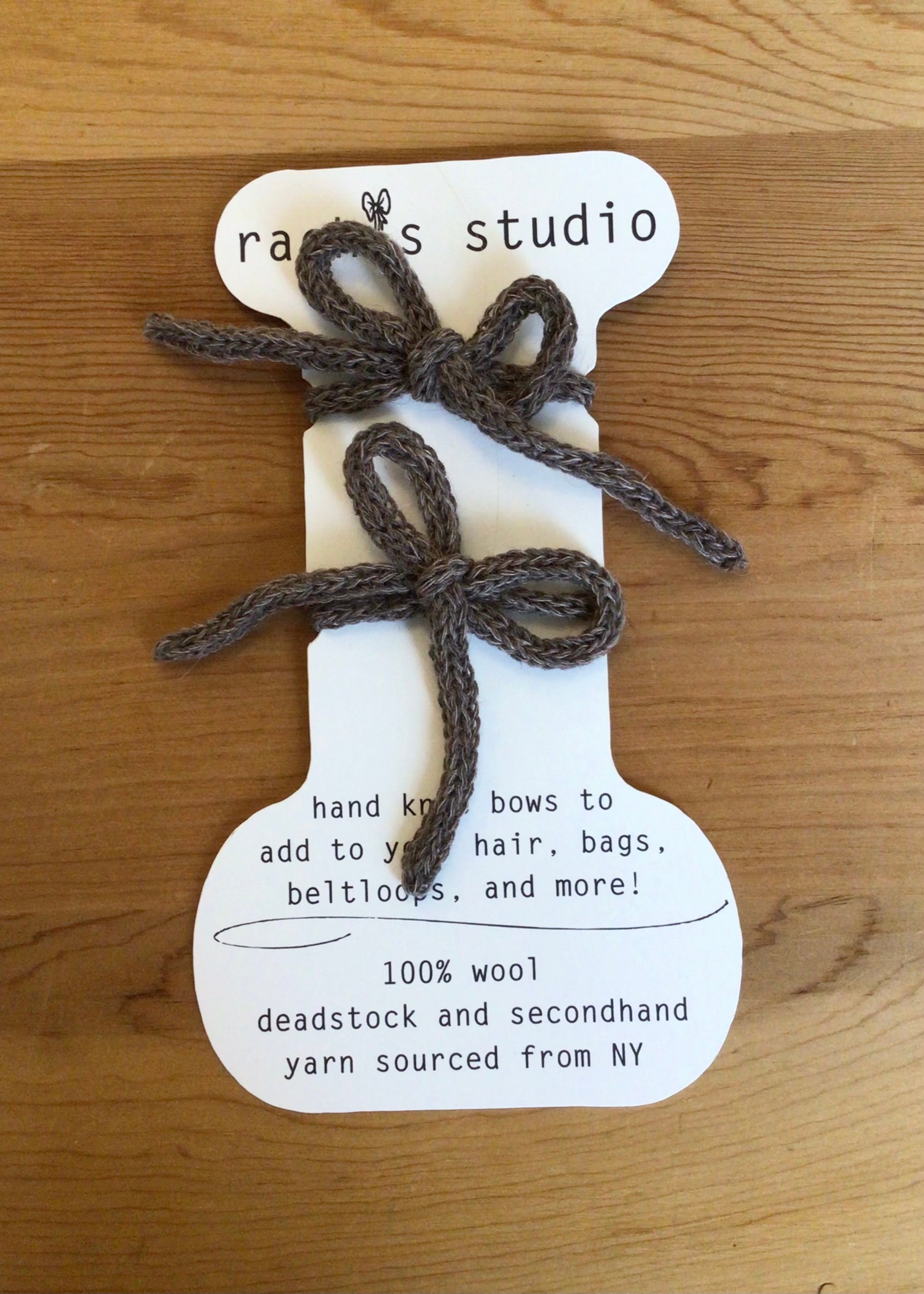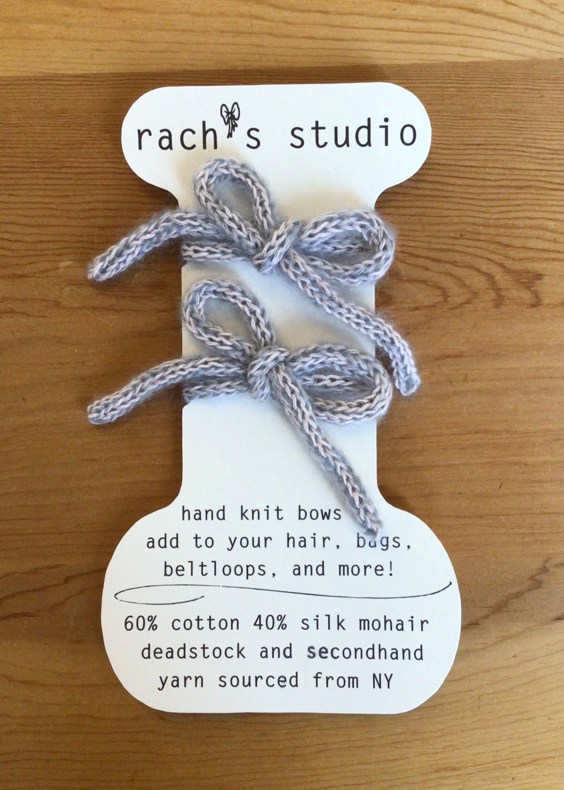 • Cotton/Silk bows are 60% cotton, 40% silk mohair deadstock and secondhand yarns sourced in NY