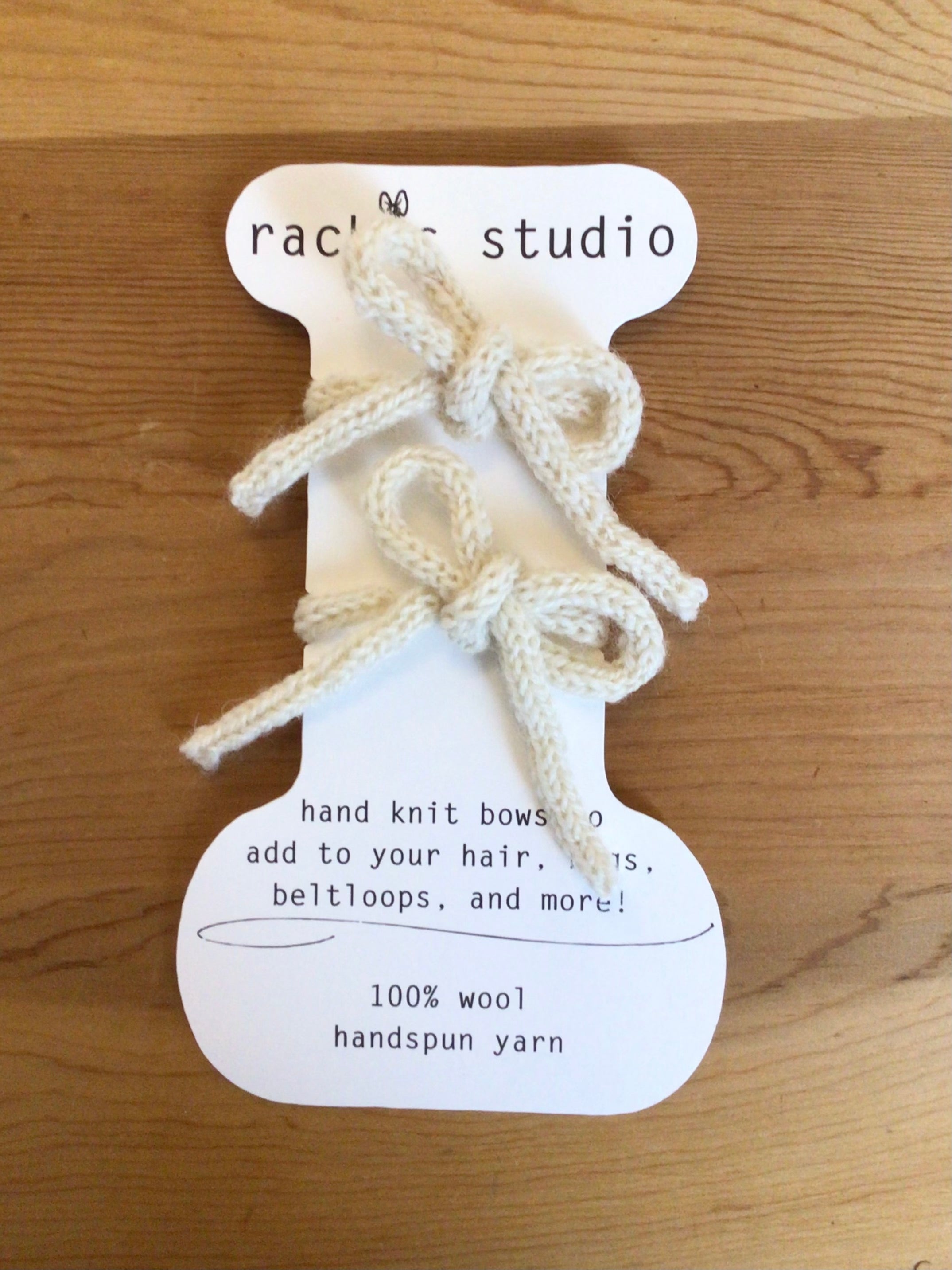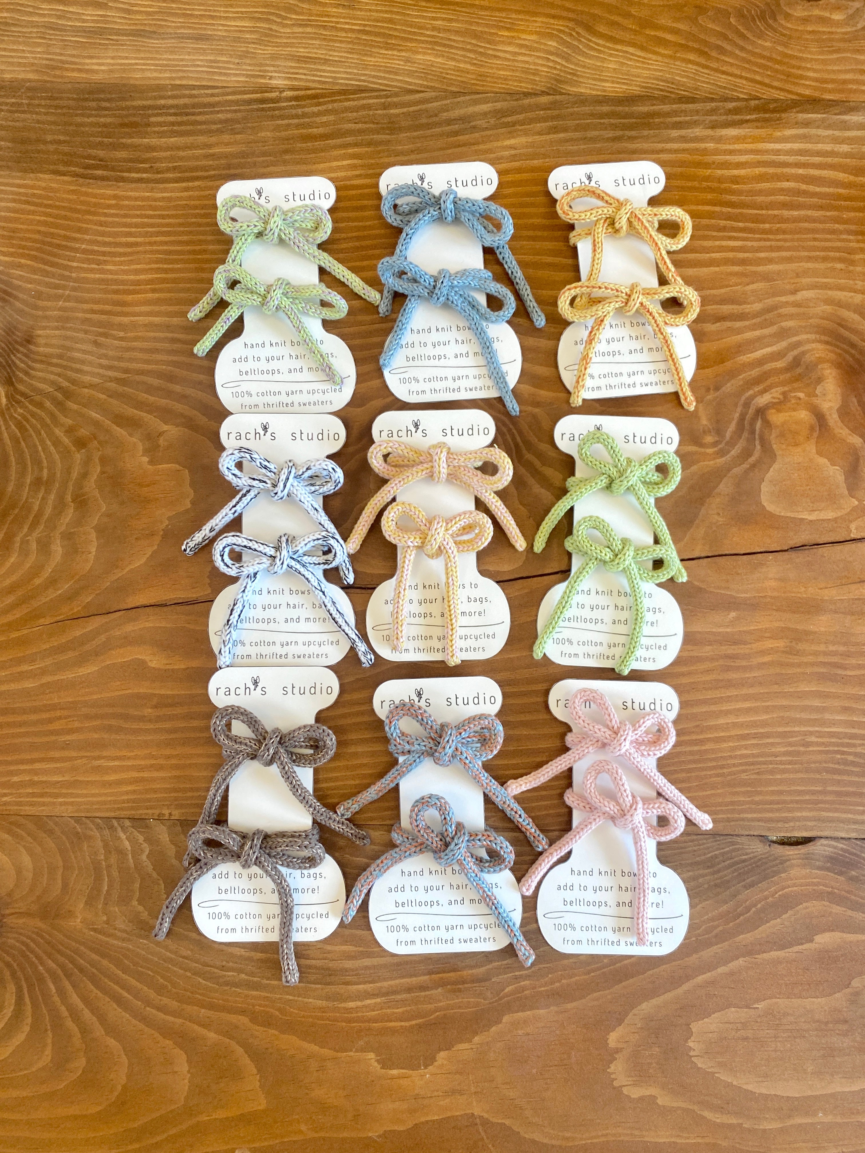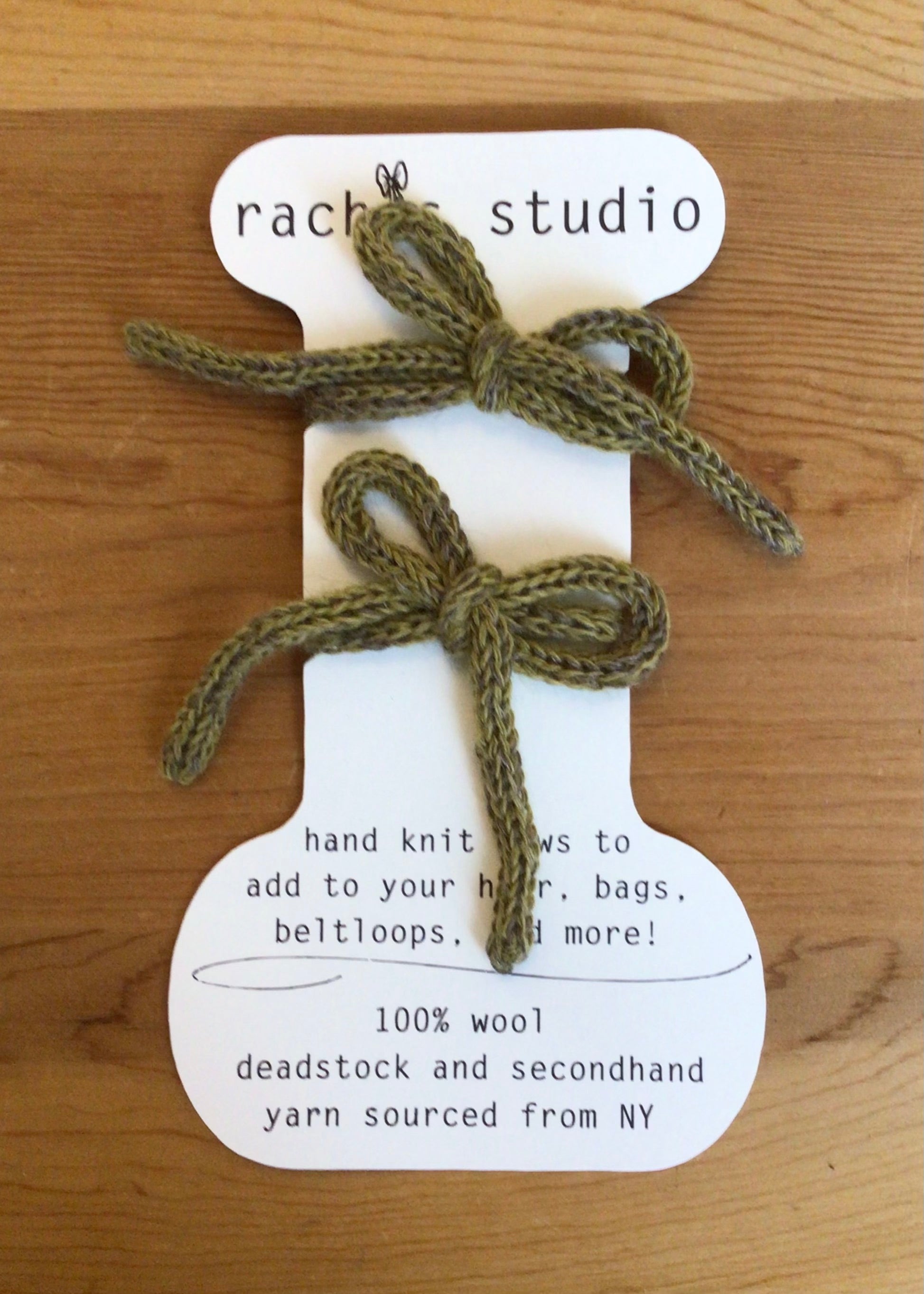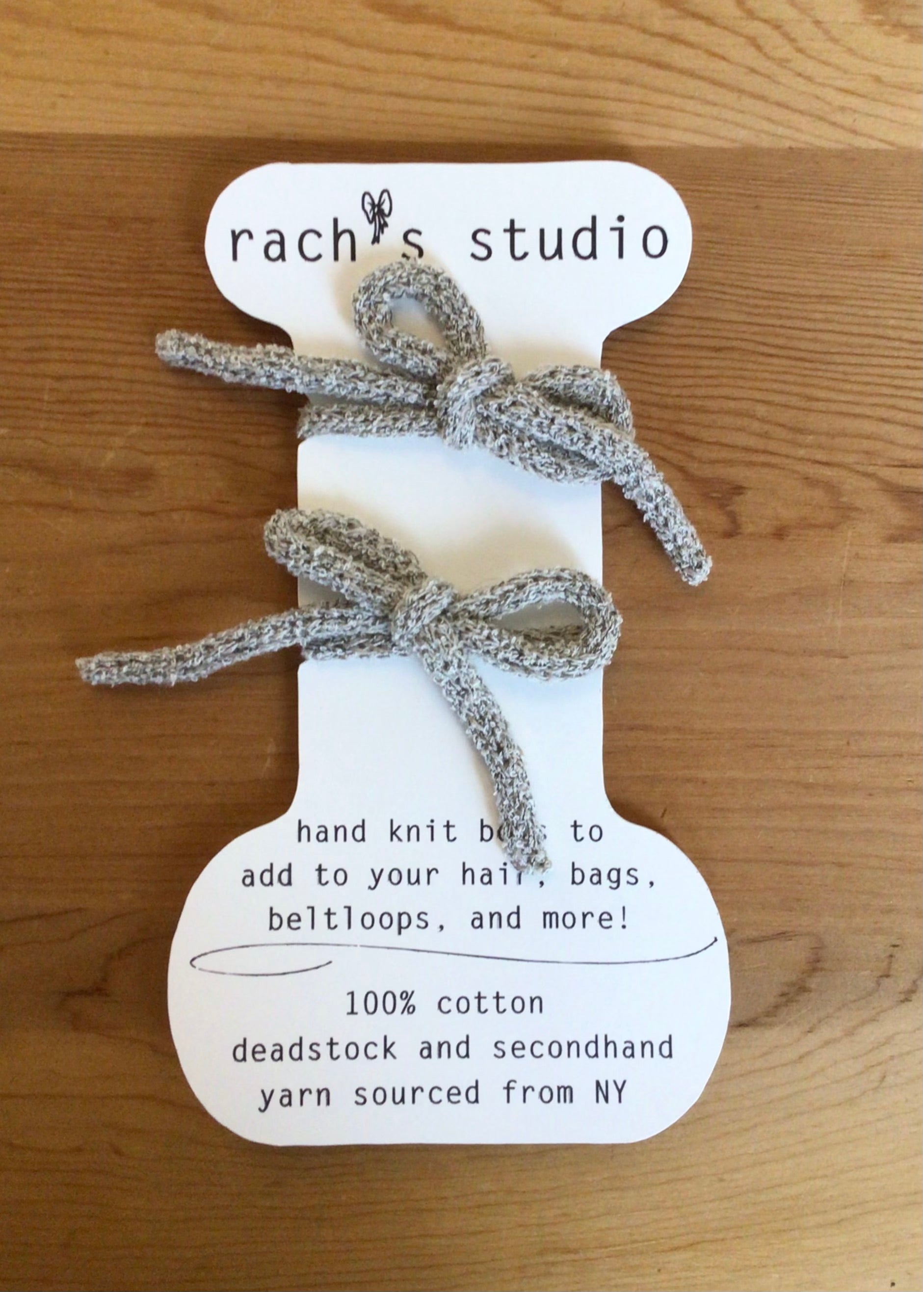 • Cotton/Silk bows are 60% cotton, 40% silk mohair deadstock and secondhand yarns sourced in NY