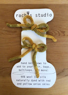 • Wool/Silk bows are made from 90% wool, 10% silk and are dyed with red & yellow onion skins
