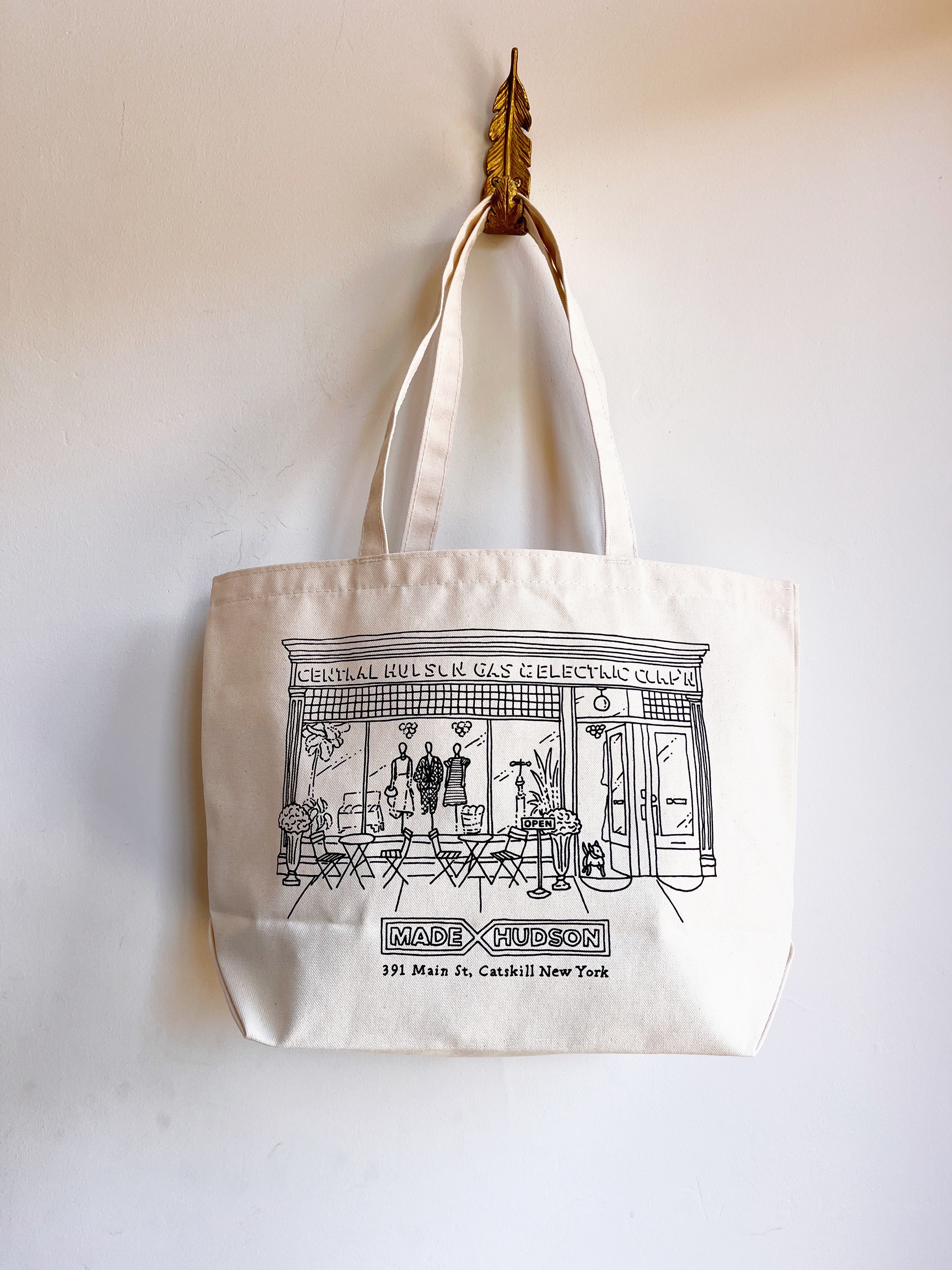 We love our storefronts and so do our customers, and now you can take them with you in the form of this chic and sturdy canvas tote bag that features the Catskill shop on one side and the Hudson shop on the other! It’s the perfect size — big enough to be useful without being enormous — and has self-canvas straps for a polished look.