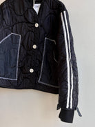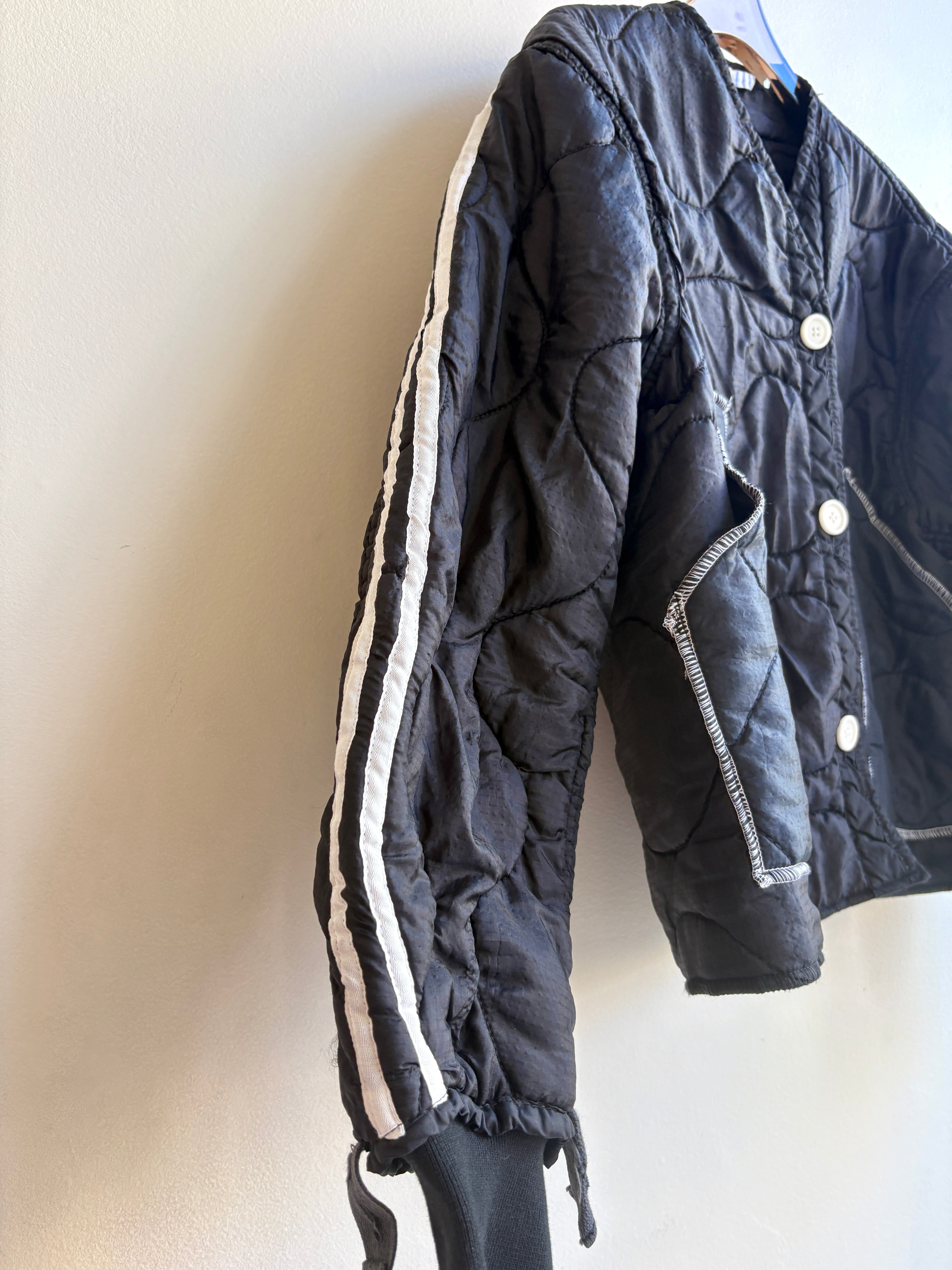 Black Army Liner Quilted Coat w/ White Buttons (Reworked)
