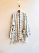 Blue and Cream Block Print Haori Jacket