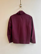 This adjustable shawl jacket is made and designed by Vilma Mare. Made from deep burgundy red light weight viscose knit, this jacket provides sleek style and clean construction.