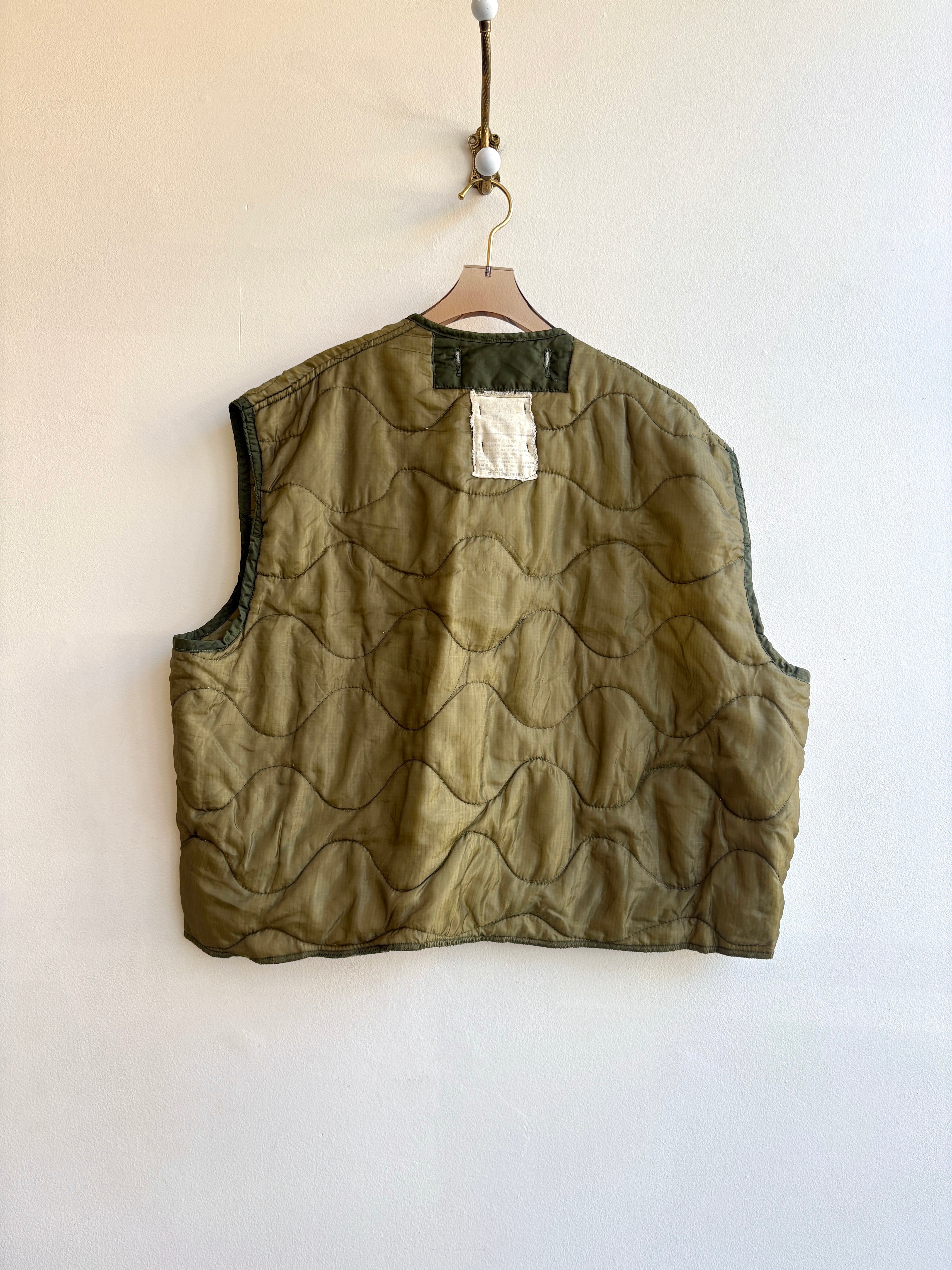 This reworked vintage M-65 Military Liner Jackets, upcycled by Sloppy Seconds, is the perfect blend of utility and style. Versatile in every way; from transitioning between seasons, layering underneath other jackets, or as a statement in itself. It will become a go-to staple in your closet either way.