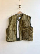 Light Olive Military Vest w/ 3 Pockets & Pink Zipper (Reworked)