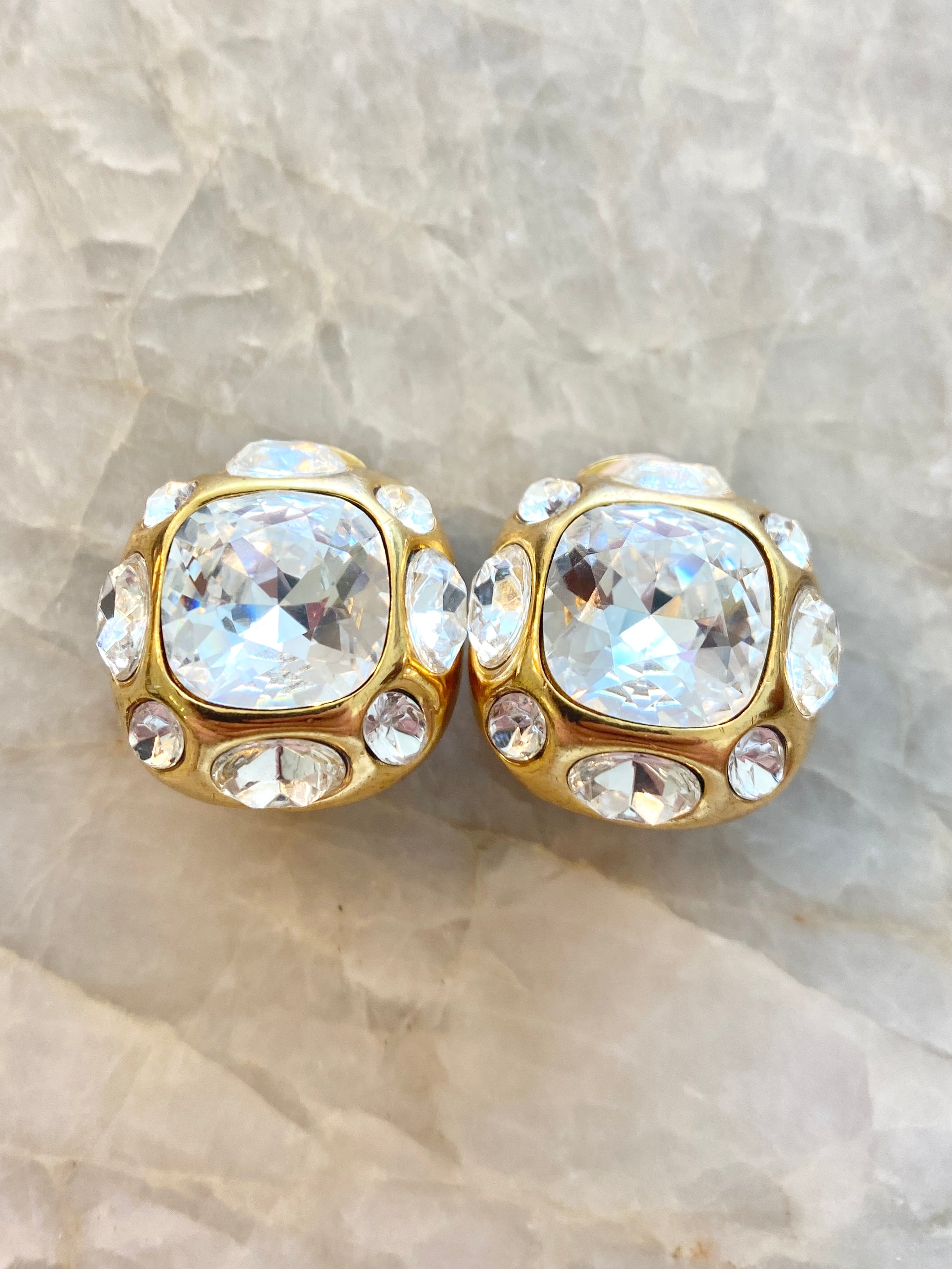 Gold and CZ Clip On Kenneth Lane Earrings (Vintage)