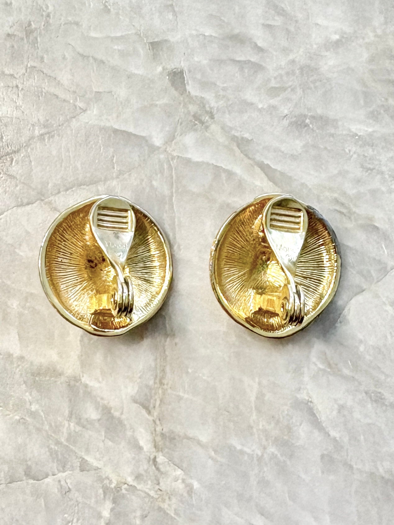 Gold Tone Button Soft Swirl Clip On Earrings (Vintage)