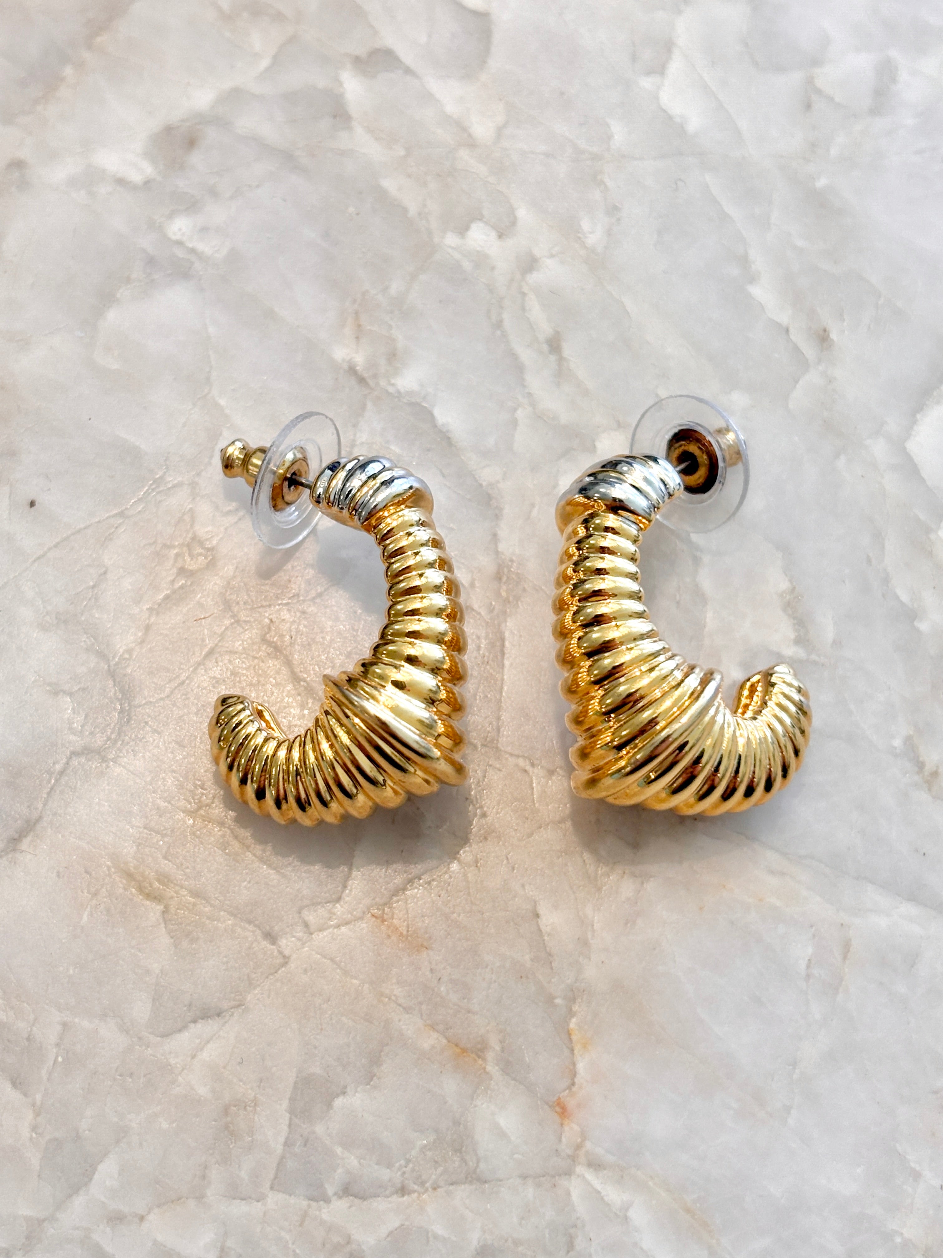 Gold Tone Silver Tip Croissant Earrings (Vintage)