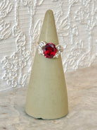 - solid sterling silver vintage ring with gorgeous center set white stone flanked by two yves Klein blue and rainbow opals