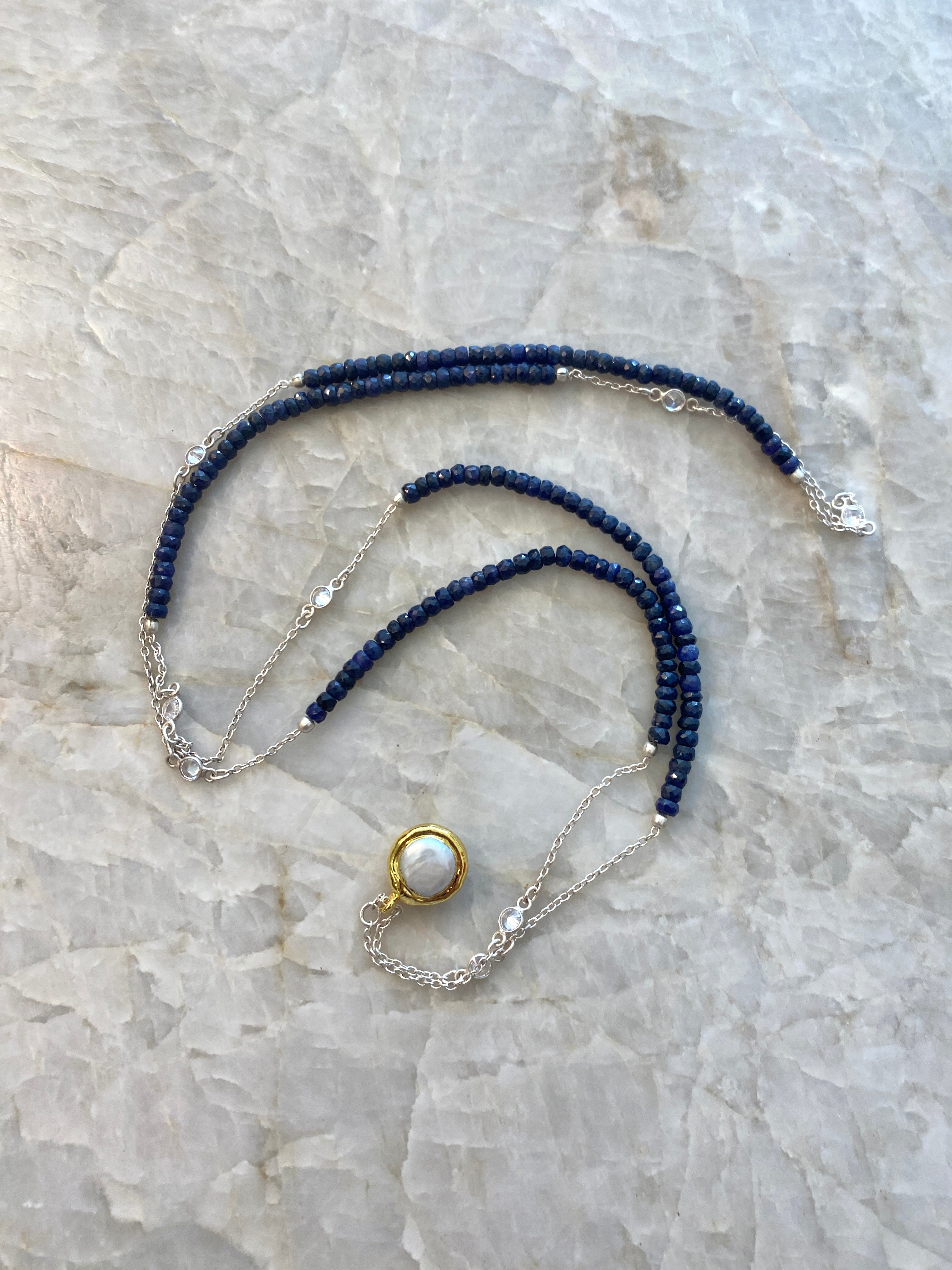 - Blue beads are natural sapphires