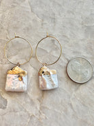 Square Baroque Dipped Pearl Dangler 18k Gold Fill Hoop Earrings