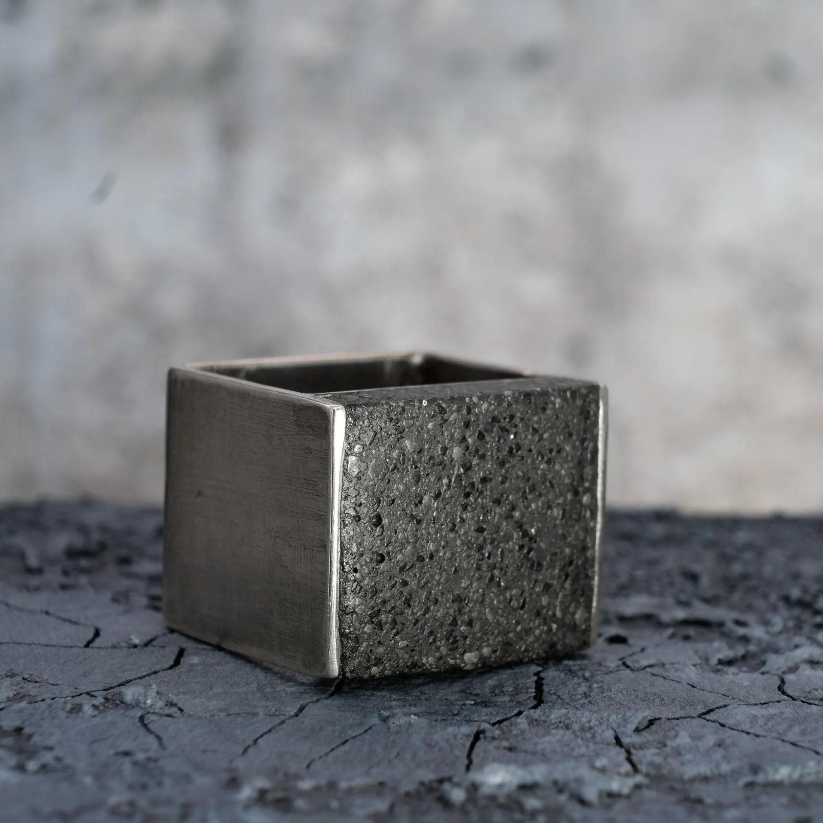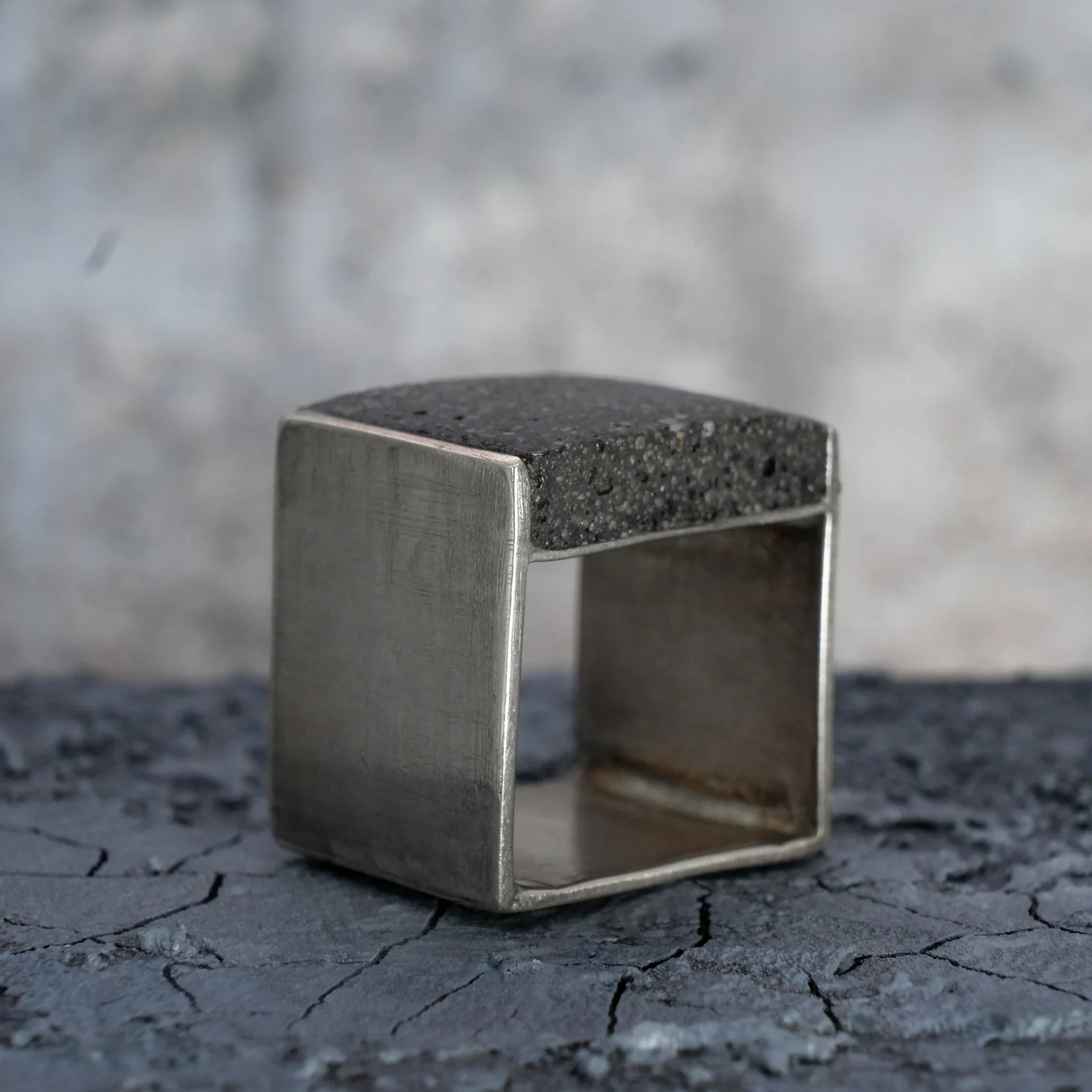 - One of a kind handmade sterling silver ring filled with jewelry grade concrete