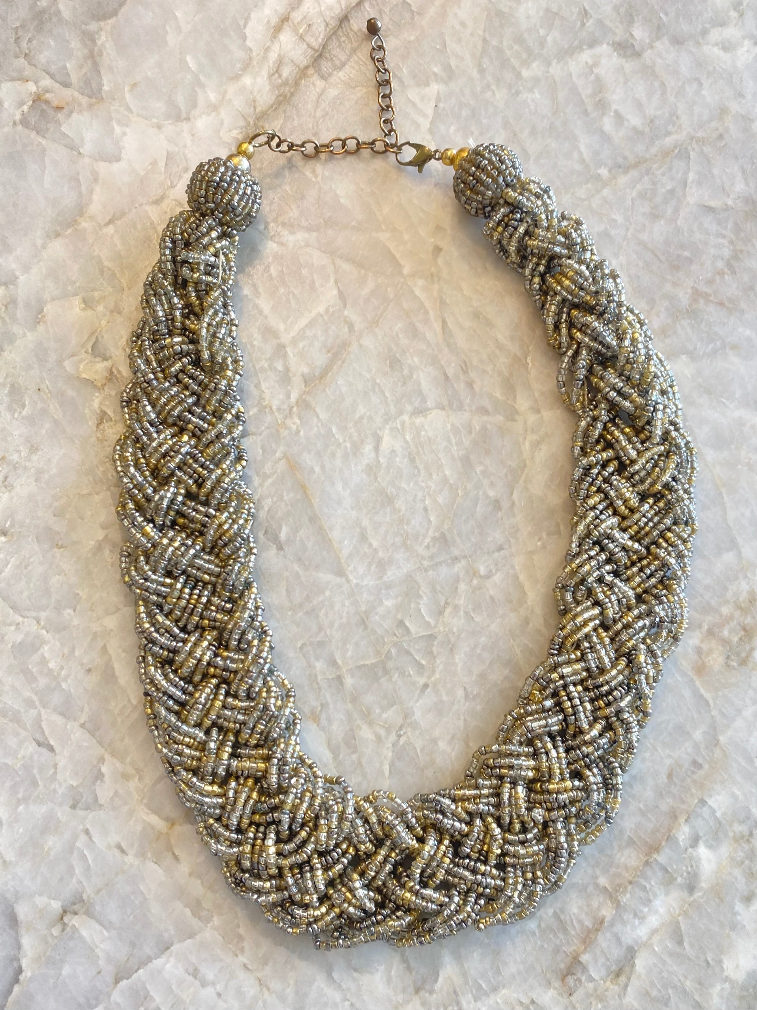 Vintage Gold and Silver Confetti Micro Beaded Necklace (Vintage)